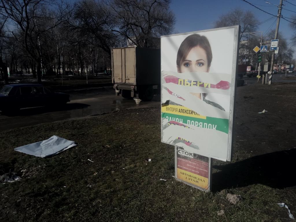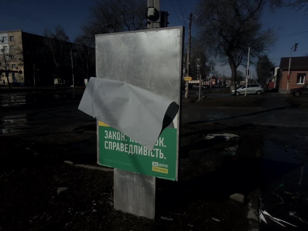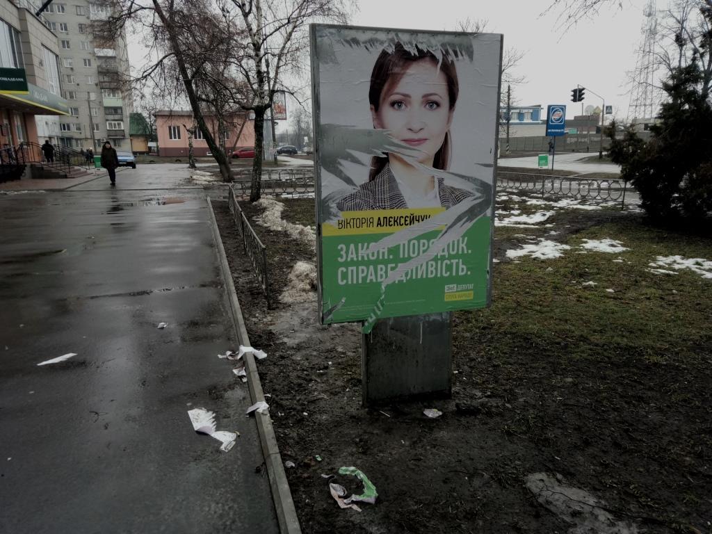 24 та 25 лютого на окрузі 179 в м. Красноград Харківської області вздовж вулиці Полтавської спостерігачі ОПОРИ зафіксували пошкоджені сітілайти з агітацією кандидатки в народні депутати Вікторії Алєксєйчук («Слуга народу»).