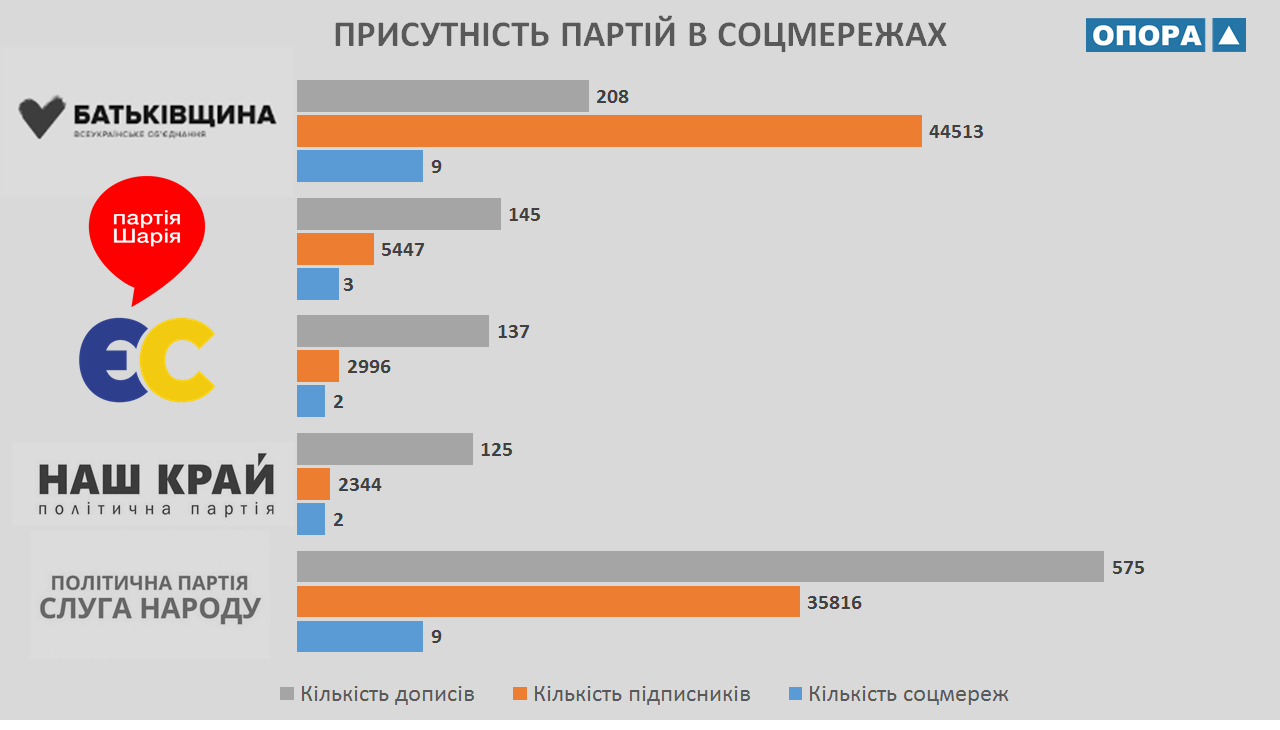 Загалом перелік партійних каналів в соціальних мережах є невичерпним. Адже існують також місцеві засоби масової інформації, навколополітичні акаунти, блогери та громадські організації які пов’язують з лідерами обласних організацій партій. В свою чергу вони мають свою розповсюдженість в соціальних мережах та кількість читачів або підписників. Але даний аналіз показує не тільки присутність у соціальних мережах, а загалом хто проводить роботу у міжвиборчий період, особливо коли пандемія внесла свої корективи у формати роботи та способи комунікації.