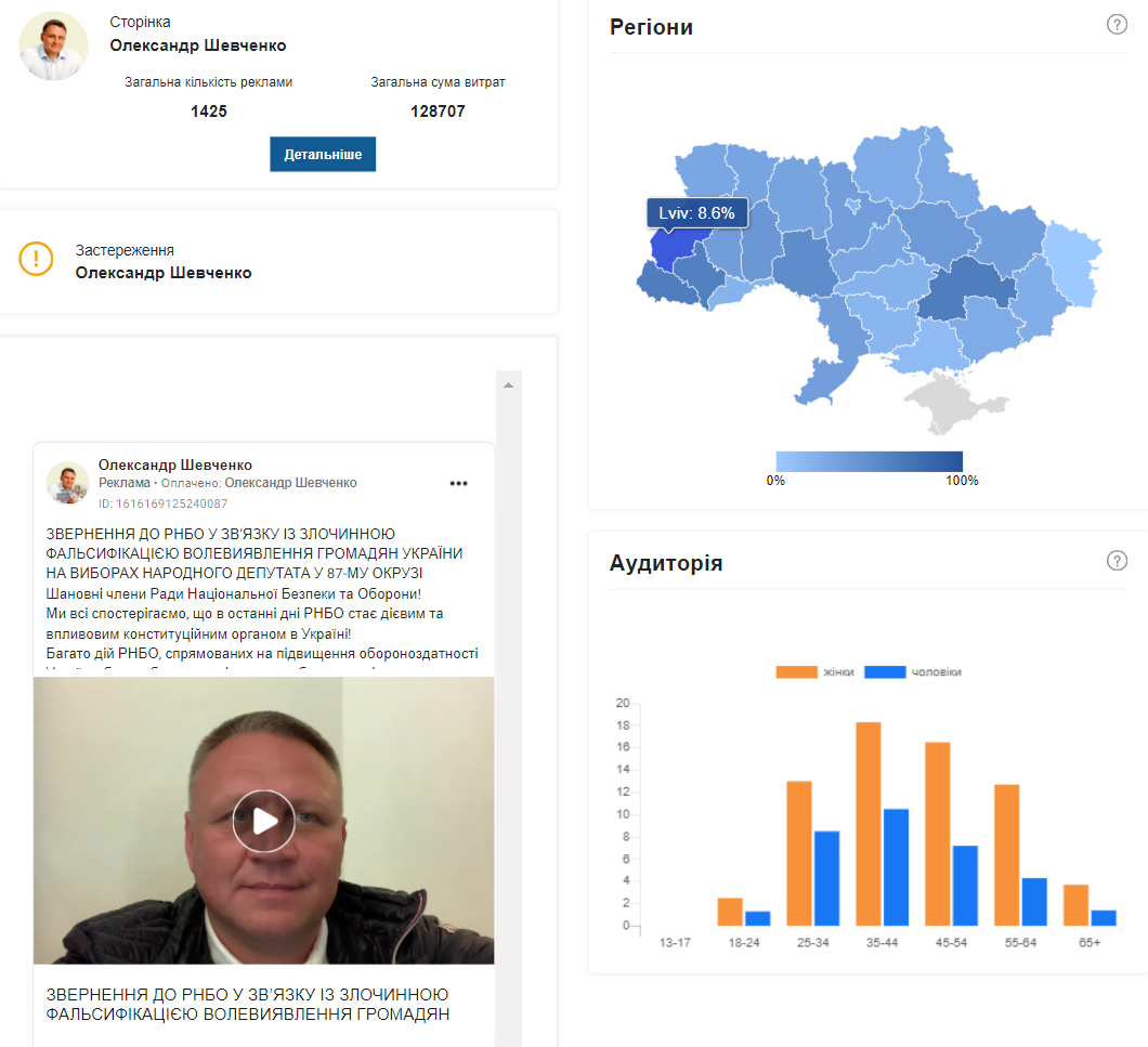 Дивіться також: Звіти та реальність. Витрати на політичну рекламу в соцмережах кандидатів на довиборах – 2021 у Раду