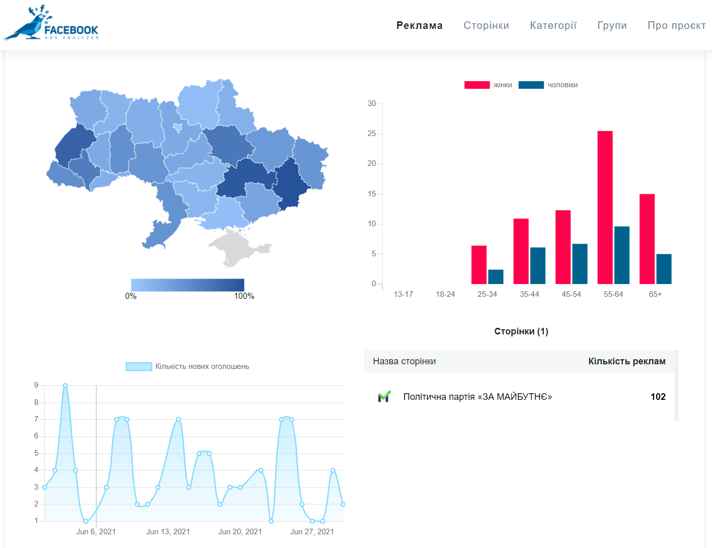 Якщо ви бажаєте самостійно дослідити витрати політичної партії або конкретного політика, скористайтеся Бібліотекою реклами Facebook та аналізатором політичної реклами, який розробила ОПОРА.