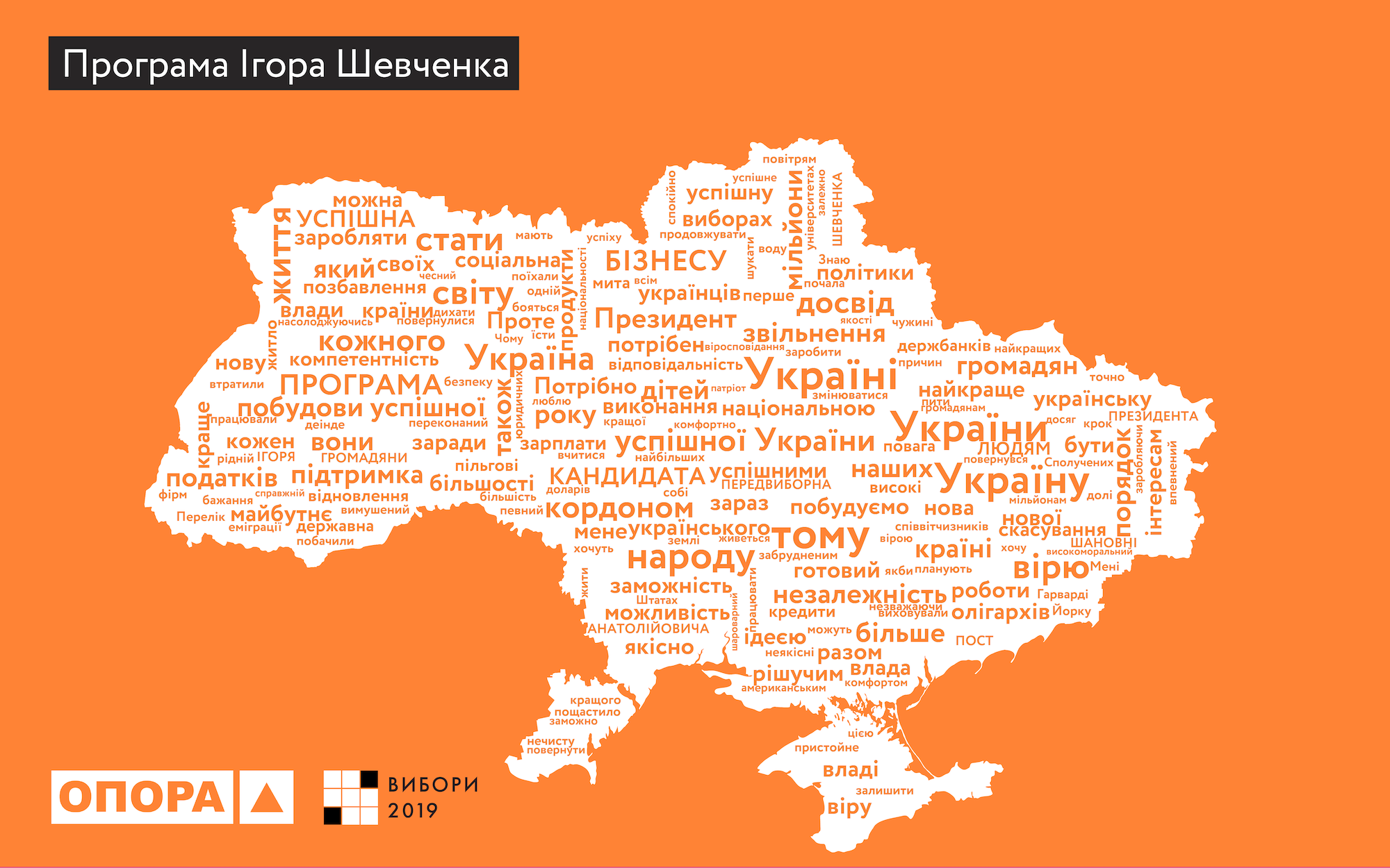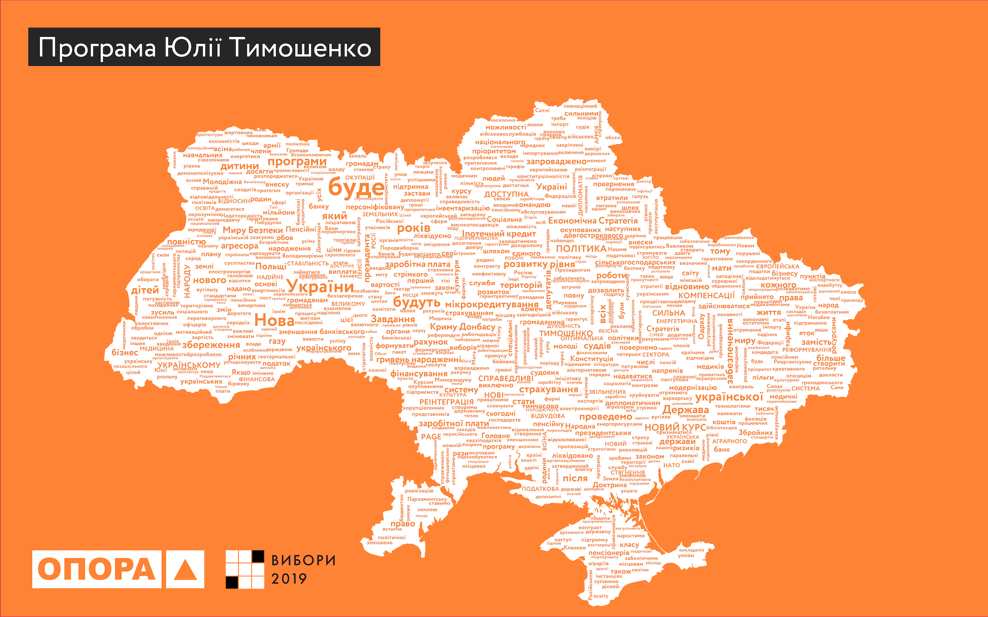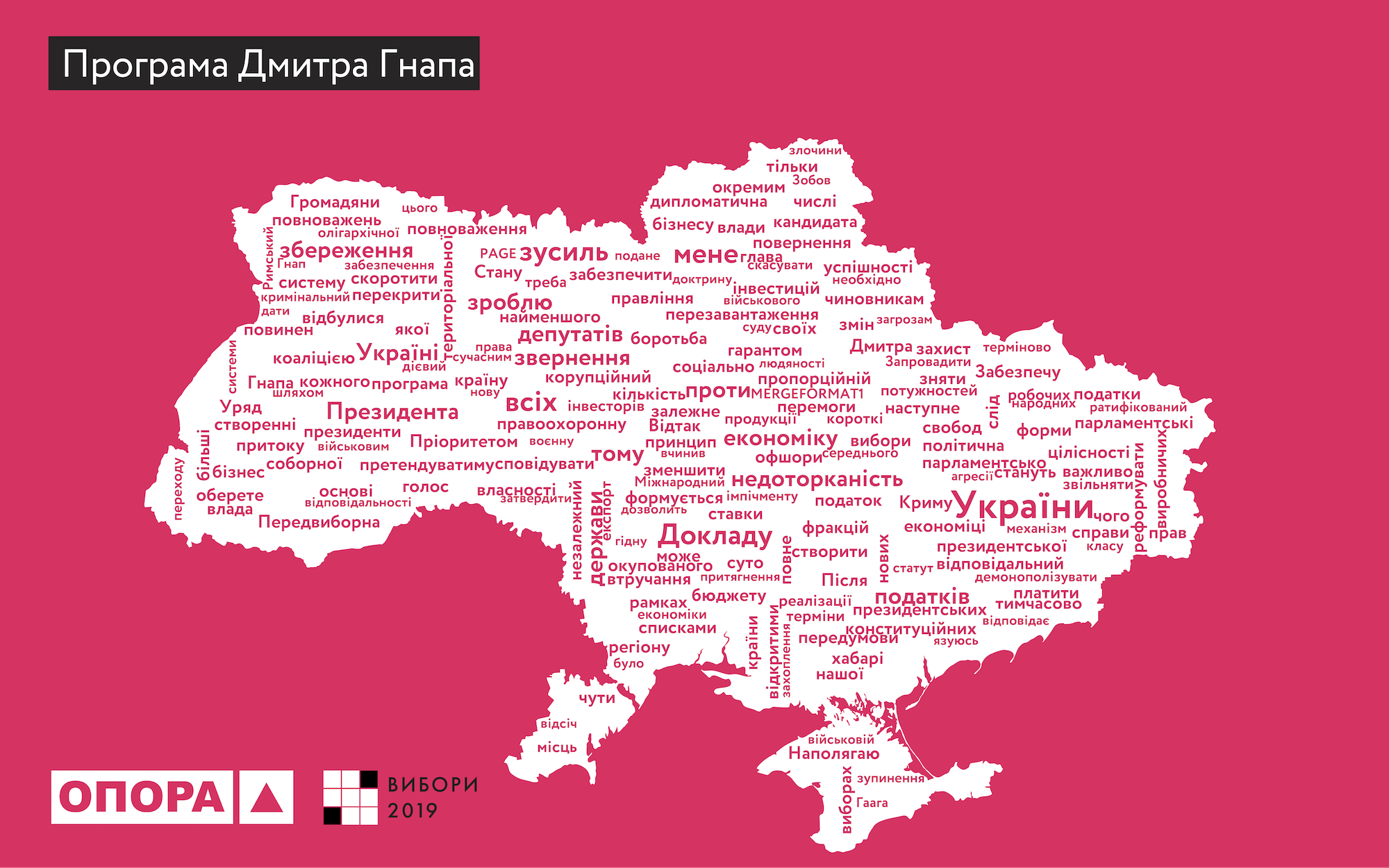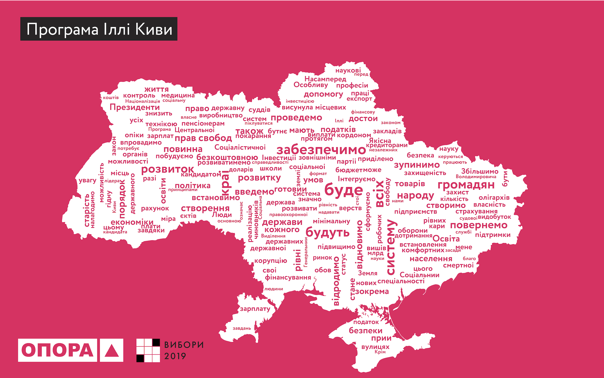 Ми довго думали над тим, як проаналізувати програми кандидатів у Президенти, і вирішили залишити це на розсуд виборців. Тому наш комп'ютер просто намалював мапи України з найбільш вживаними словами в програмах. Дивіться, реагуйте.