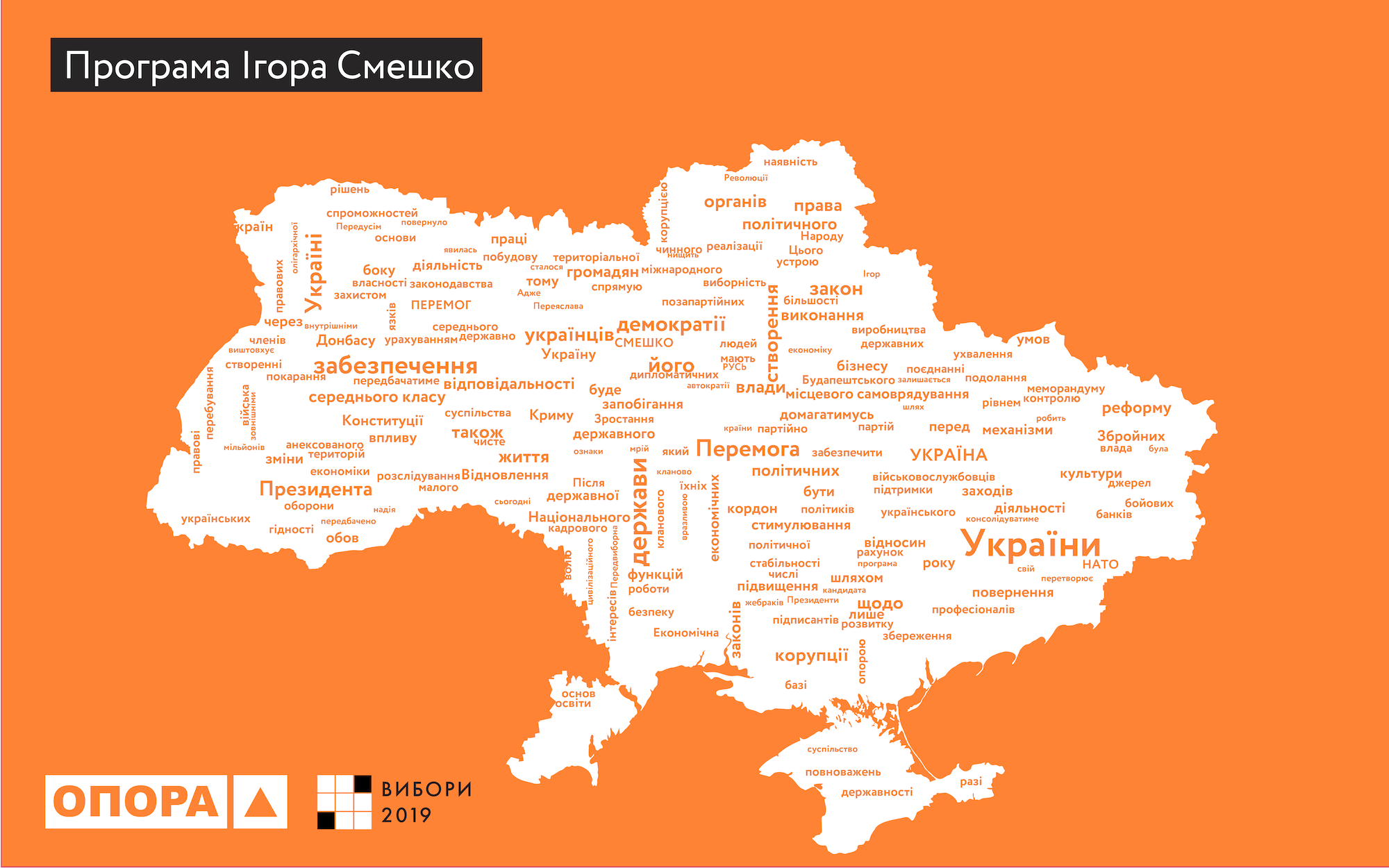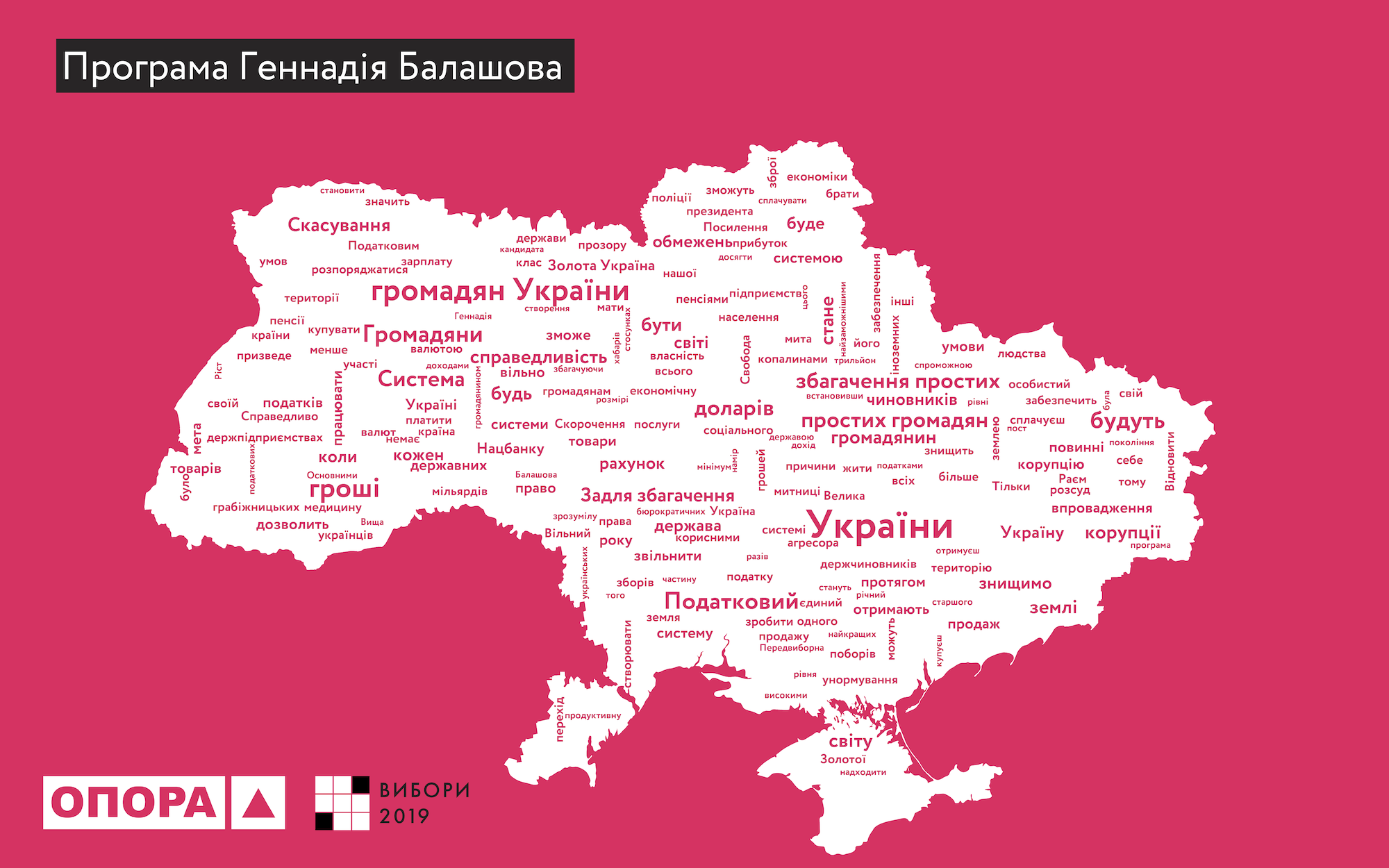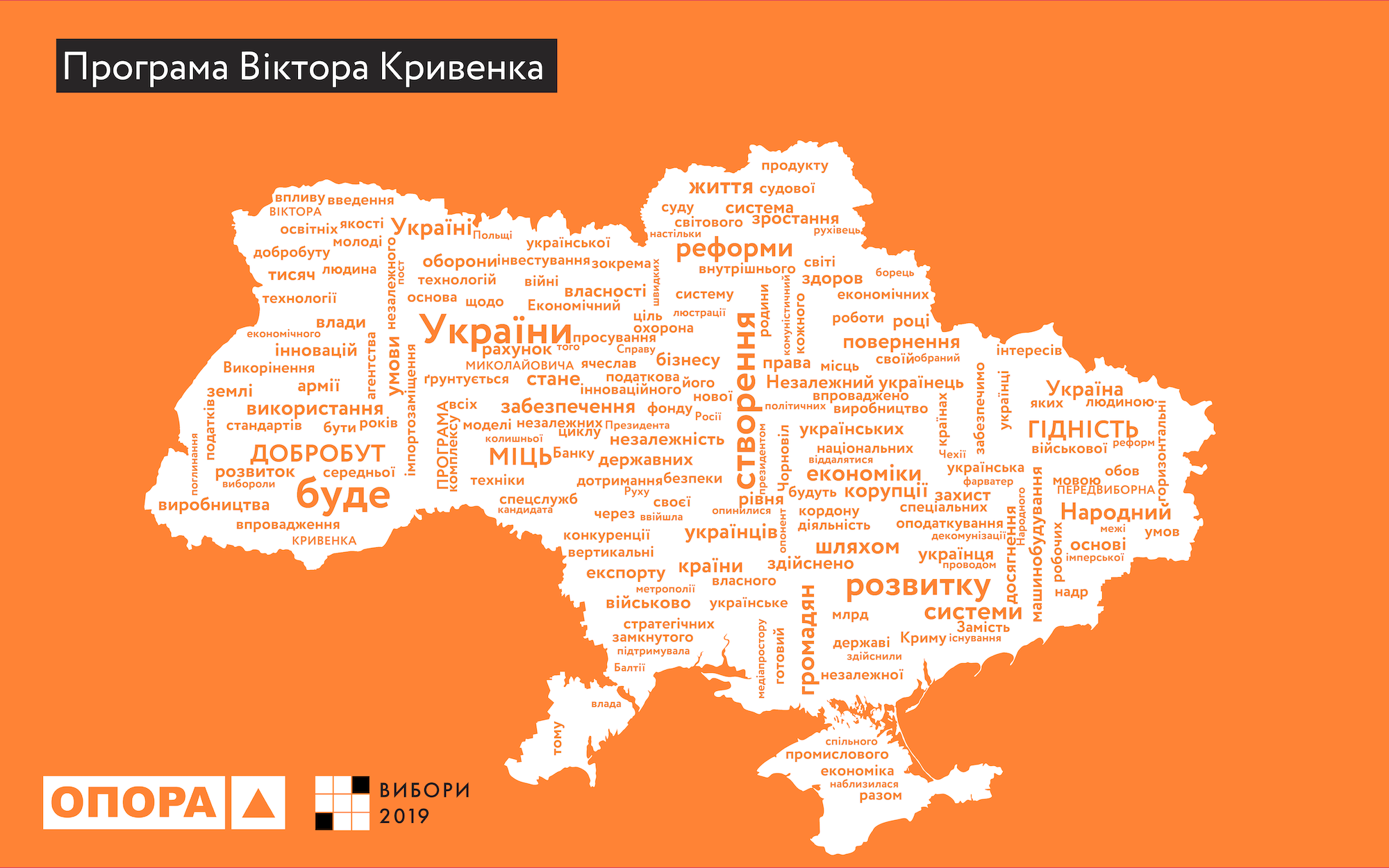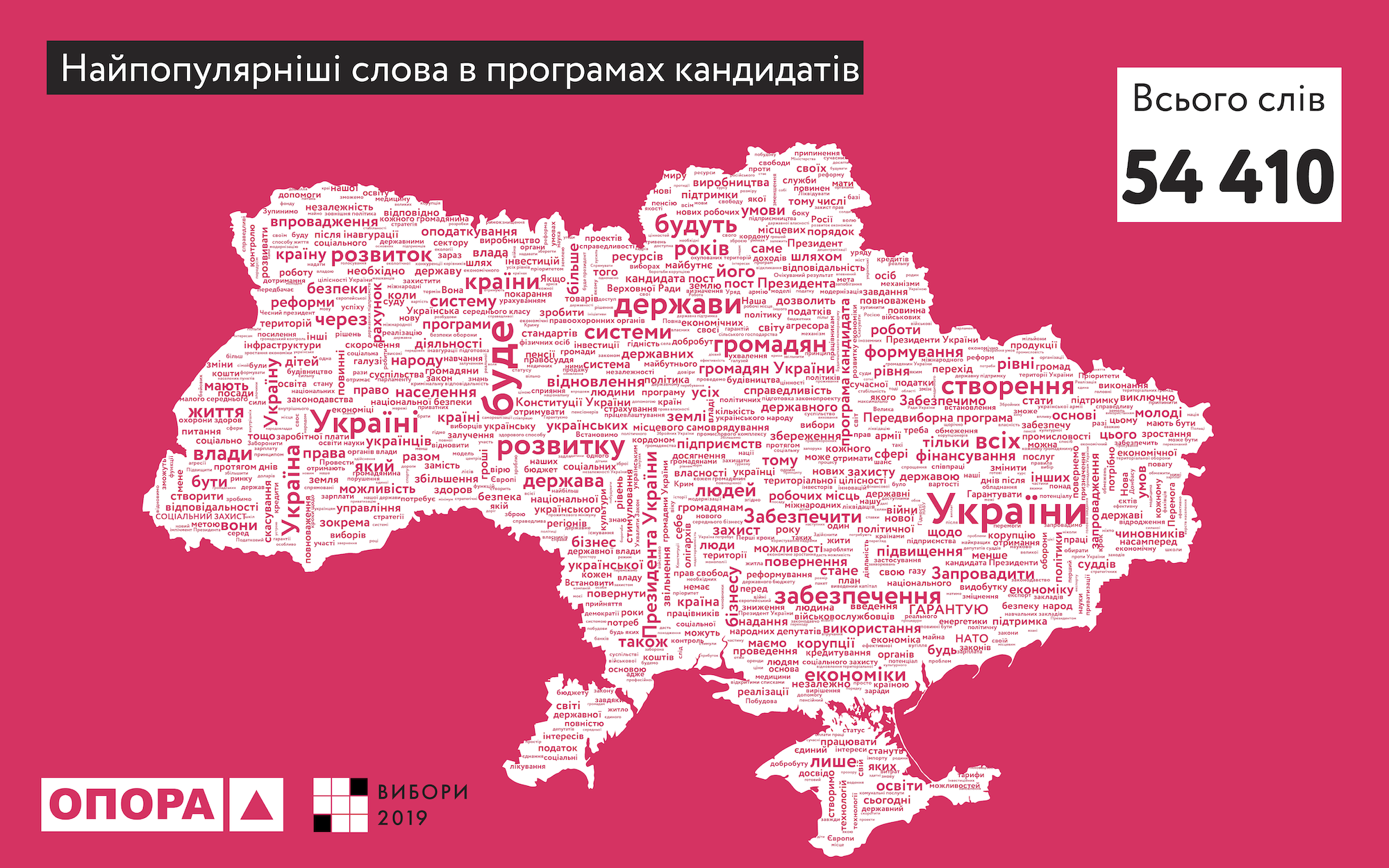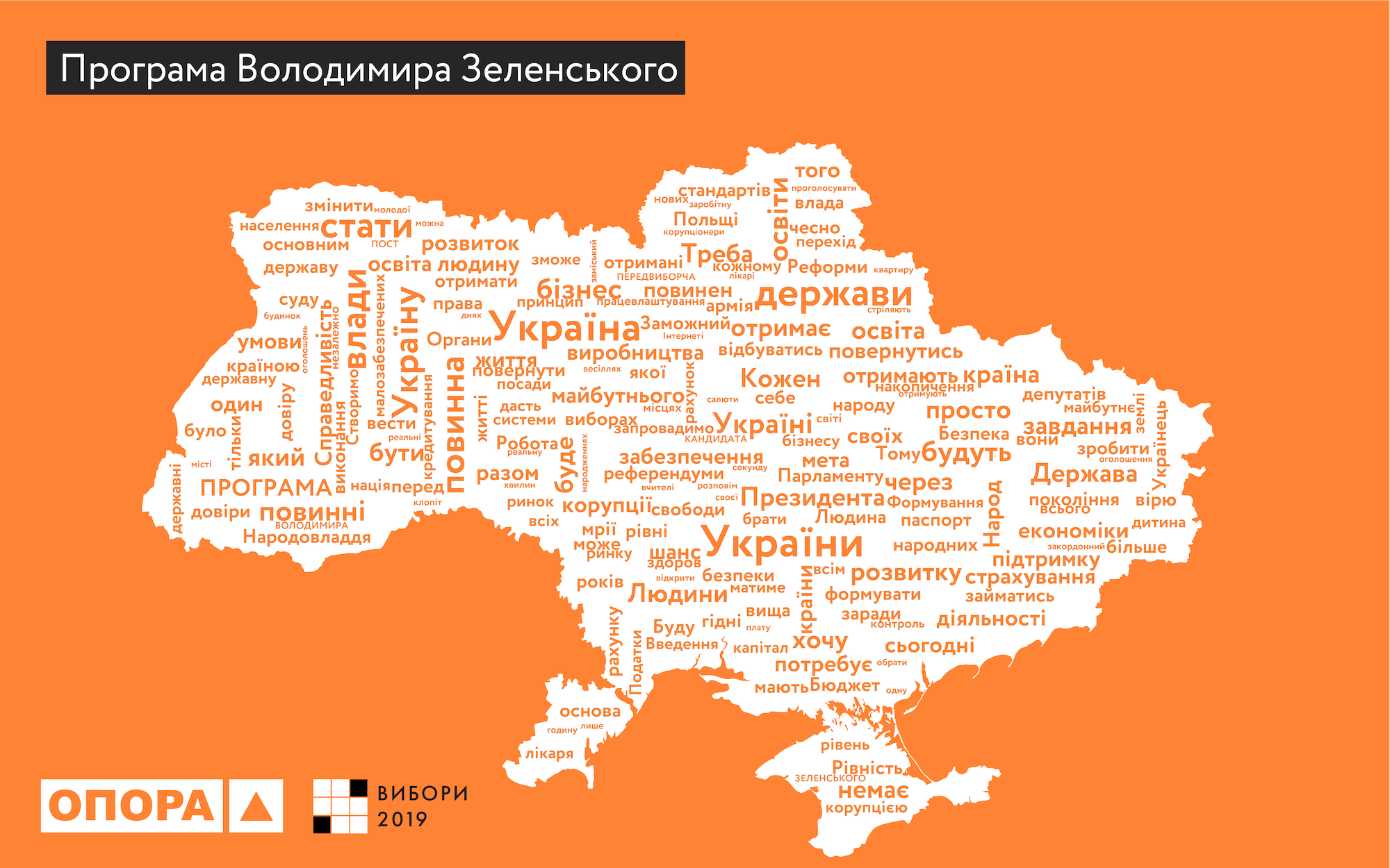 Ми довго думали над тим, як проаналізувати програми кандидатів у Президенти, і вирішили залишити це на розсуд виборців. Тому наш комп'ютер просто намалював мапи України з найбільш вживаними словами в програмах. Дивіться, реагуйте.