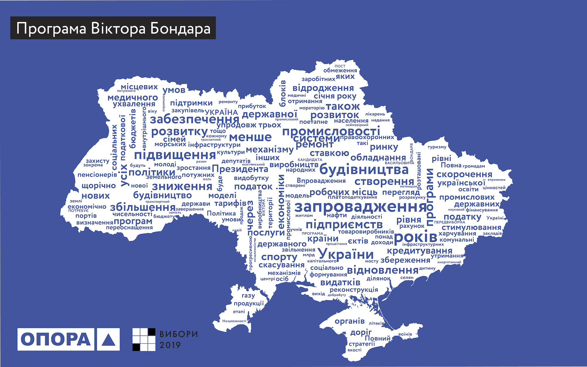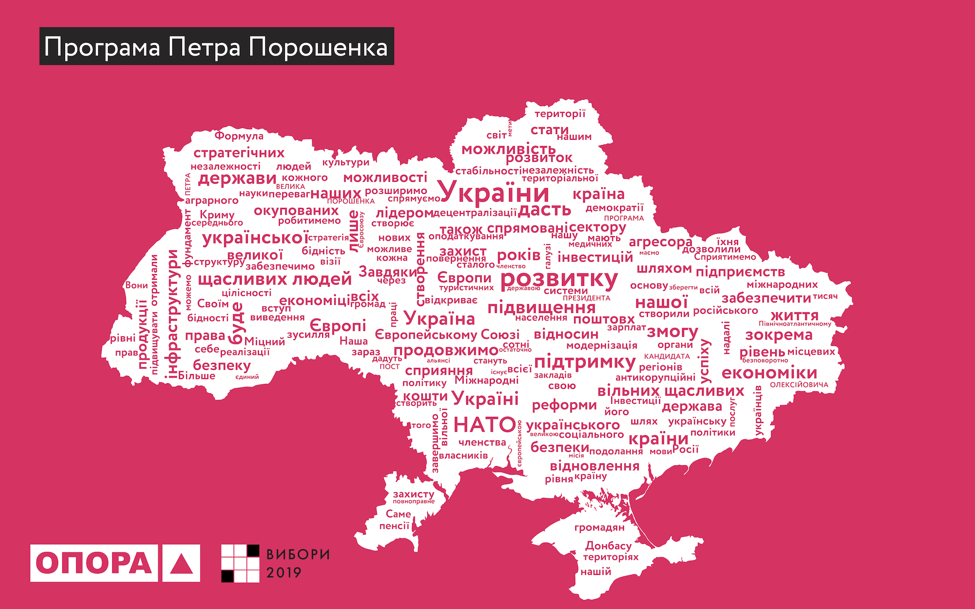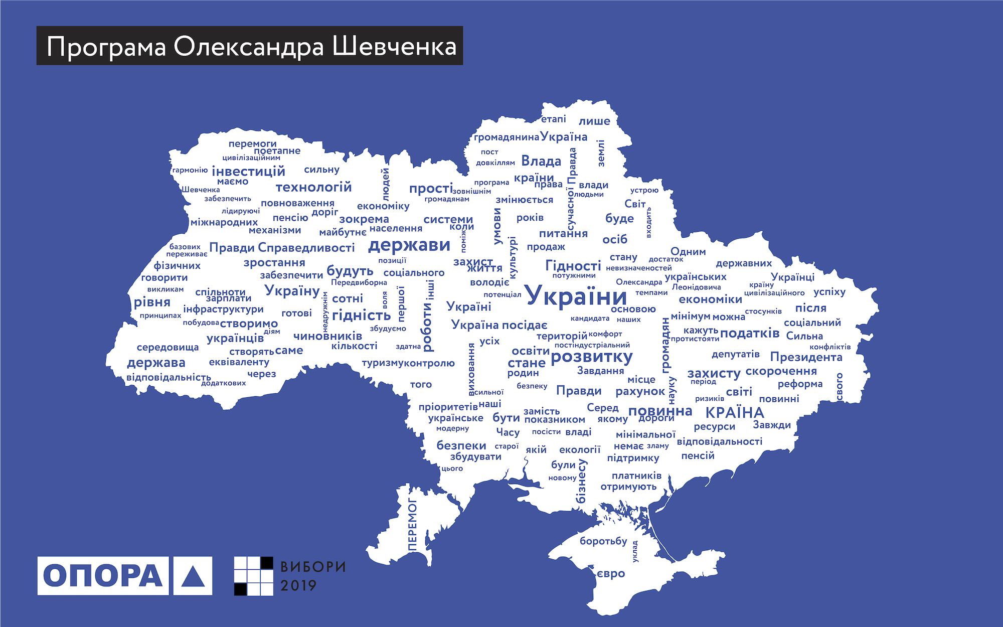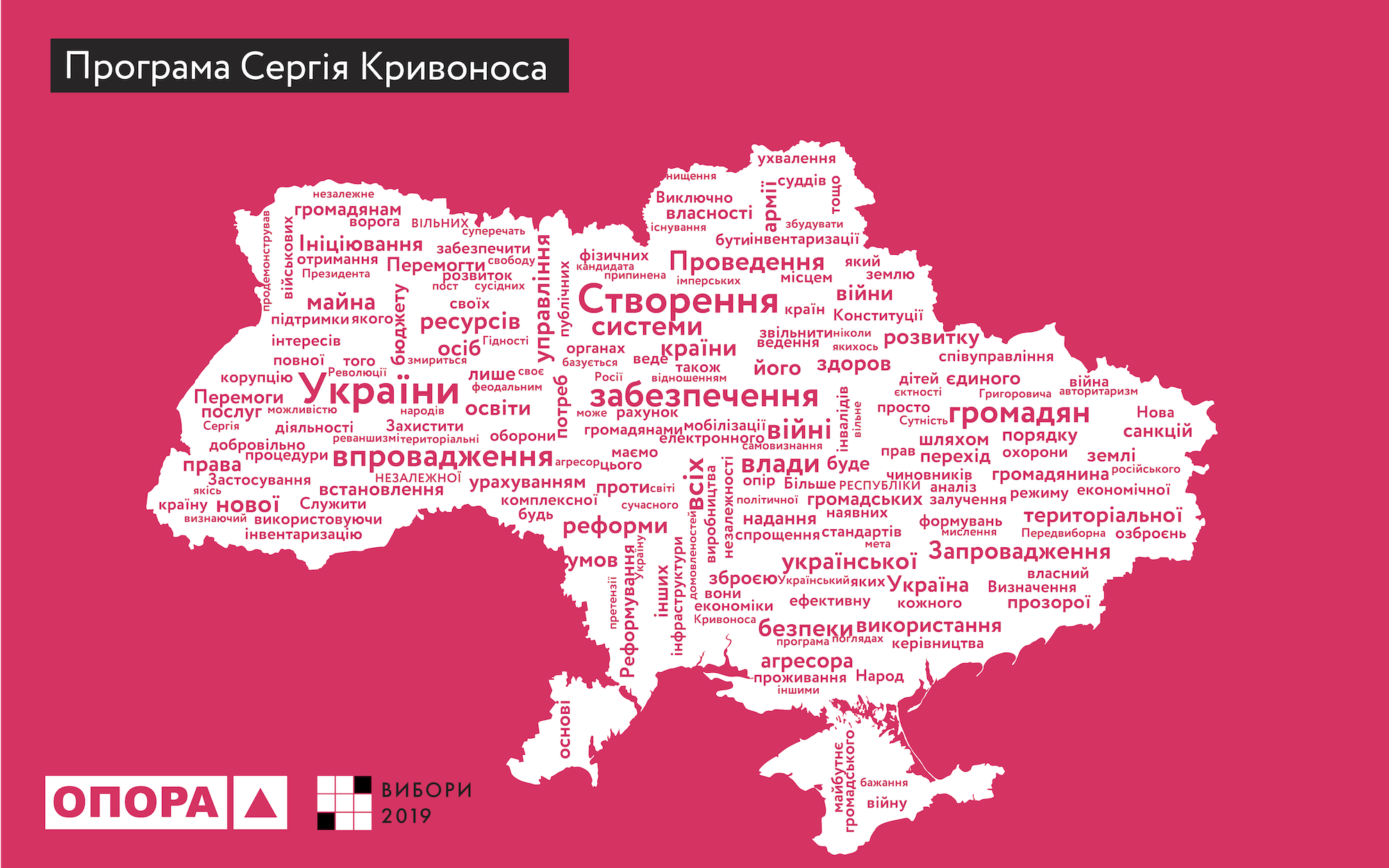 Ми довго думали над тим, як проаналізувати програми кандидатів у Президенти, і вирішили залишити це на розсуд виборців. Тому наш комп'ютер просто намалював мапи України з найбільш вживаними словами в програмах. Дивіться, реагуйте.