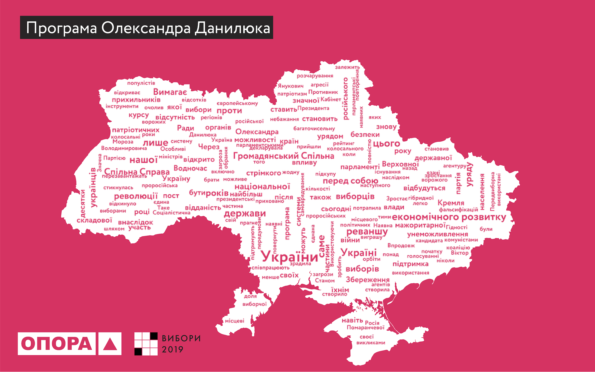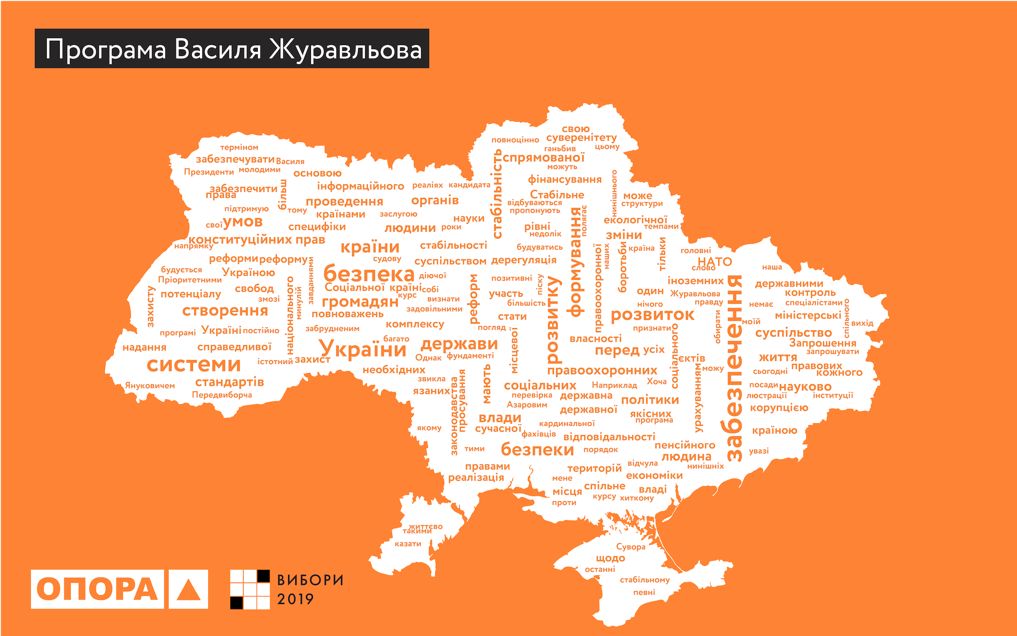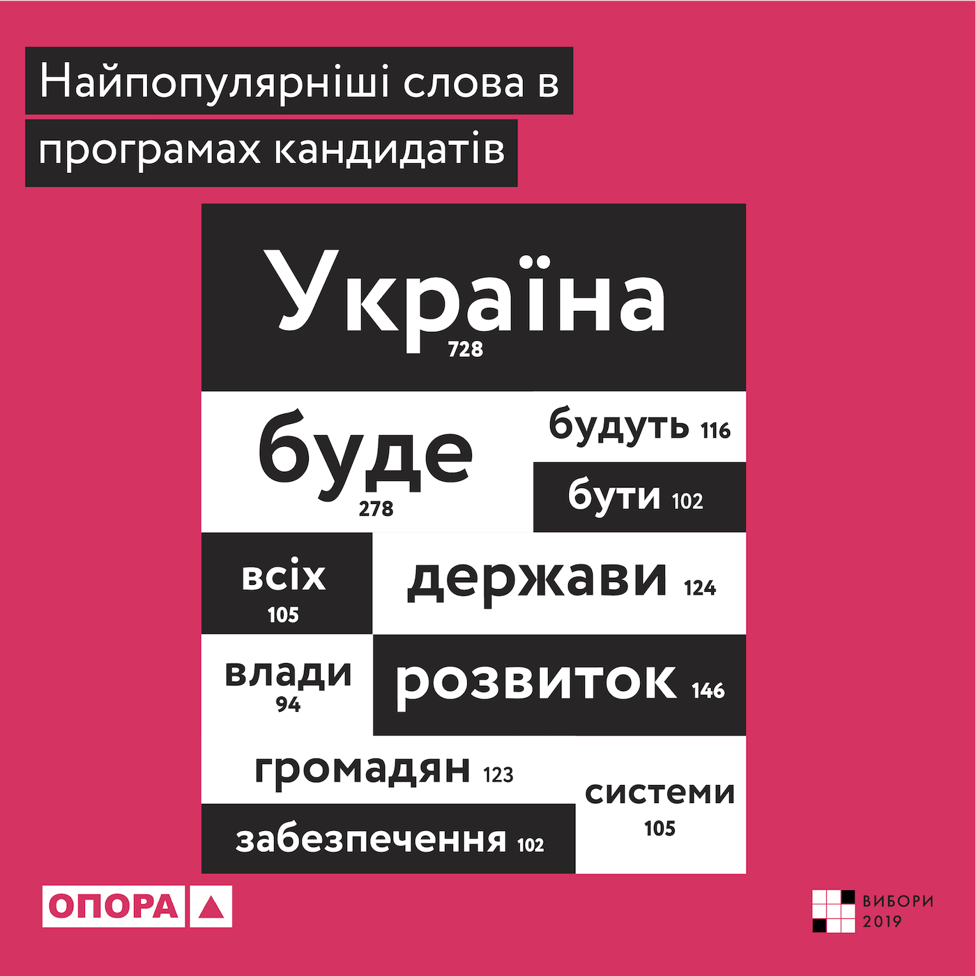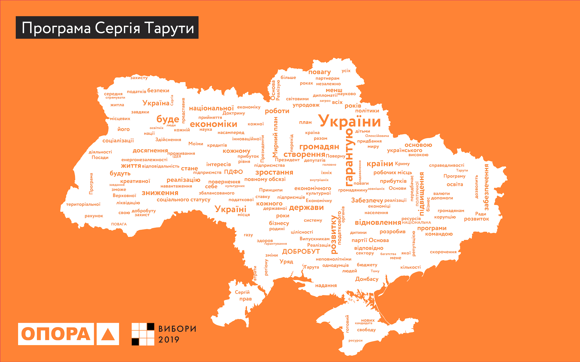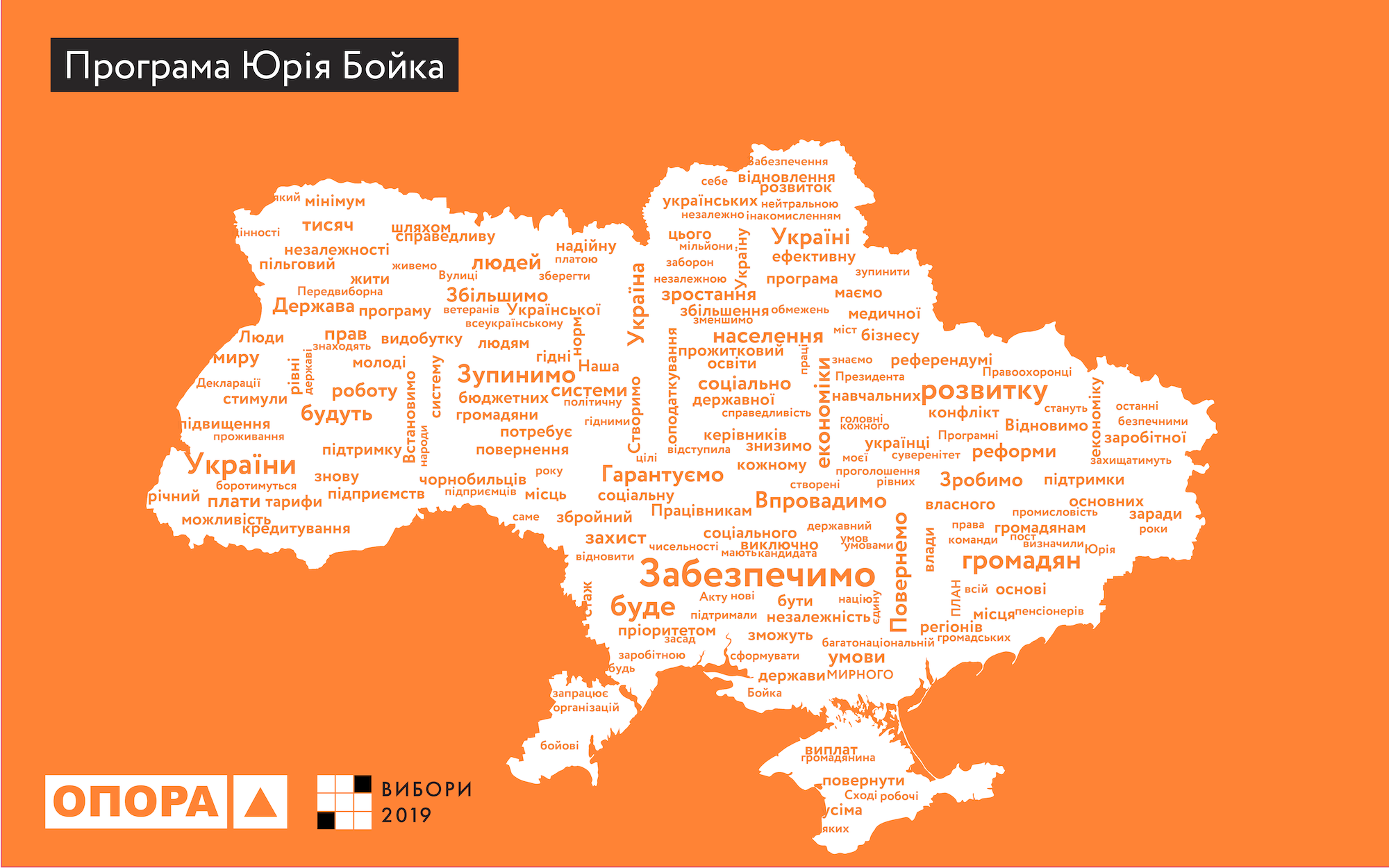 Ми довго думали над тим, як проаналізувати програми кандидатів у Президенти, і вирішили залишити це на розсуд виборців. Тому наш комп'ютер просто намалював мапи України з найбільш вживаними словами в програмах. Дивіться, реагуйте.