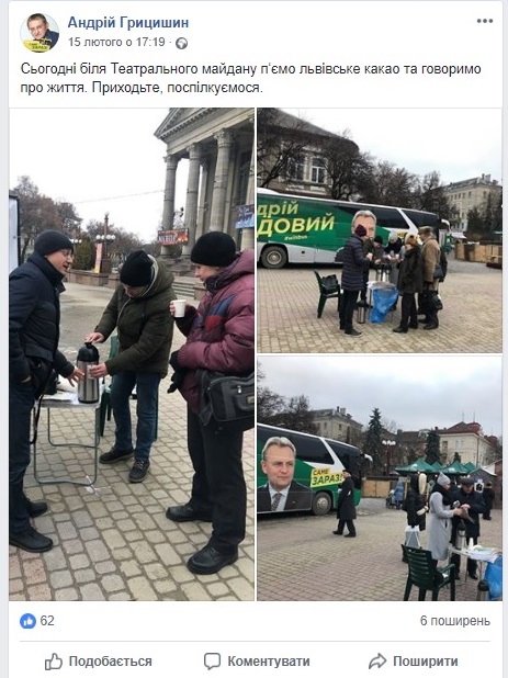 Цього ж дня, депутат Тернопільської міської ради від партії «Об’єднання «Самопоміч» Андрій Грицишин на своїй сторінці у Facebook запросив мешканців міста на зустріч: «Сьогодні біля Театрального майдану п’ємо львівське какао та говоримо про життя. Приходьте, поспілкуємося»