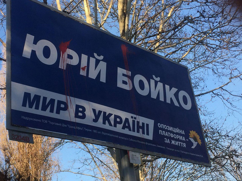 Координатор спостереження Громадянської мережі ОПОРА за виборами в Одеській області зазначає: «Оскільки Юрій Бойко був зареєстрований кандидатом на пост Президента України 22 січня, то зафіксовані випадки пошкодження його агітаційних матеріалів можуть мати ознаки перешкоджання агітаційної діяльності кандидата відповідно до ч. 2 ст. 157 Кримінального Кодексу України».