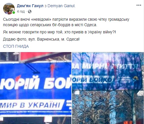 Водночас цього ж дня лідер громадської організації «Вуличний фронт» Дем’ян Ганул на своїй сторінці у Facebook розмістив пост про пошкодження борда.