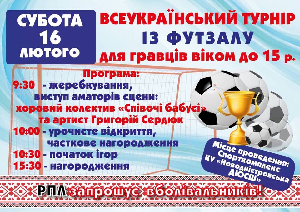 Радикальна партія Олега Ляшка 16 лютого організувала турнір з футзалу серед гравців віком до 15 років у м. Новодністровськ Чернівецької області. Організатори нагороджували гравців кубками та м'ячами, а сам захід супроводжувався агітацією на користь кандидата в Президенти Олега Ляшка.