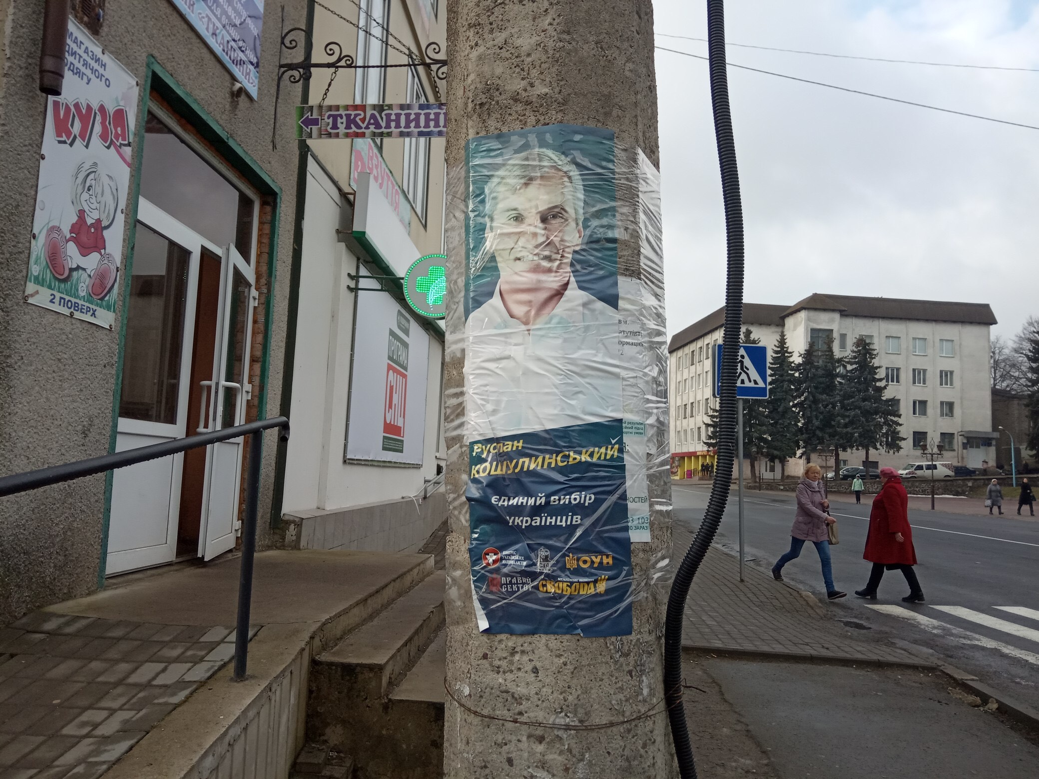 Також 20 лютого спостерігач ОПОРИ у місті Горохів на вулиці Шевченка виявив на електроопорі листівку на користь Руслана Кошулинського. На агітматеріалі, де зображений кандидат та було написано «Руслан Кошулинський єдиний вибір українців» відсутні вихідні дані. Тож спостерігач ОПОРИ звернувся із заявою до поліції. Після звернення служба оперативного реагування 102 вилучила агітаційний матеріал.