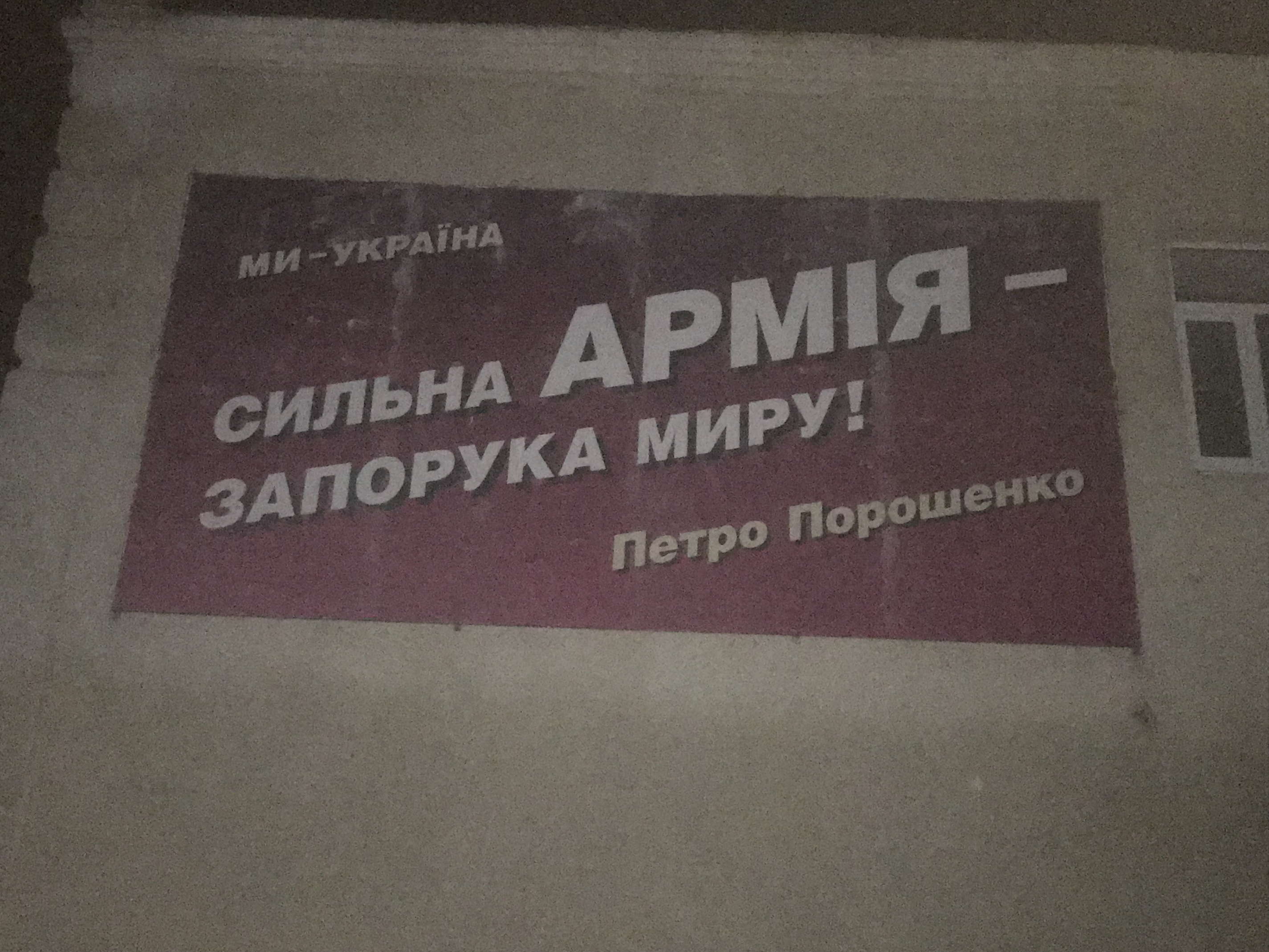У Богуславі Київської області на приміщенні музею по вулиці Шевченка 36, розміщено білборд з написом «Ми – Україна. Сильна армія – запорука миру. Петро Порошенко».
