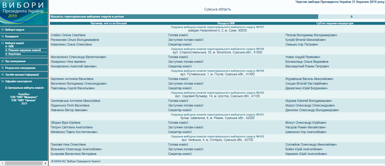 ЦВК внесла зміни в складі окружних виборчих комісій на чергових виборах Президента України 31 березня 2019 року. Зокрема, достроково припинено повноваження 24 членів окружних виборчих комісій Сумської області, замість них затверджені інші кандидатури.