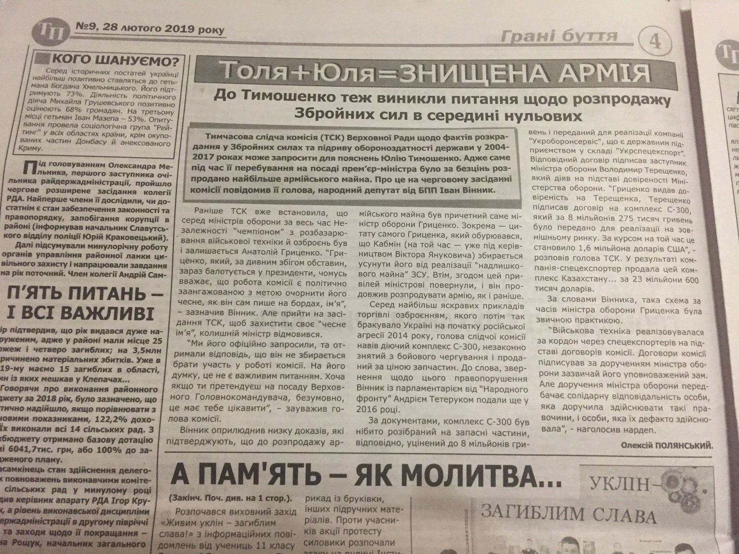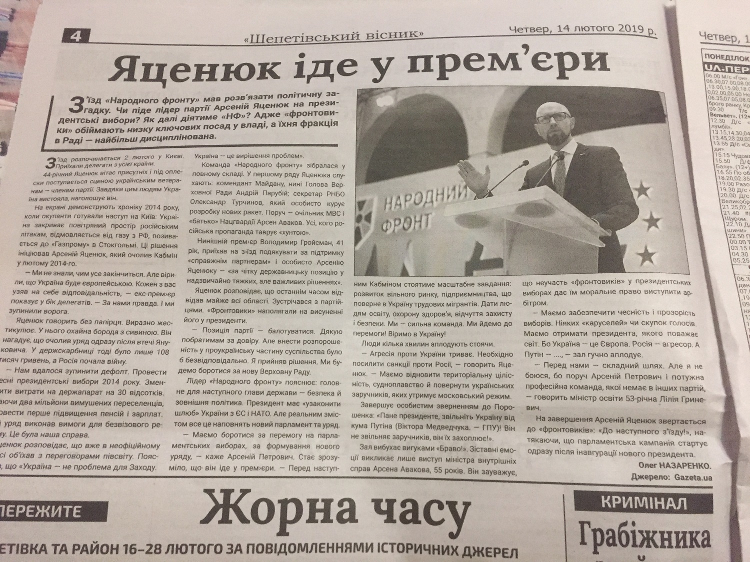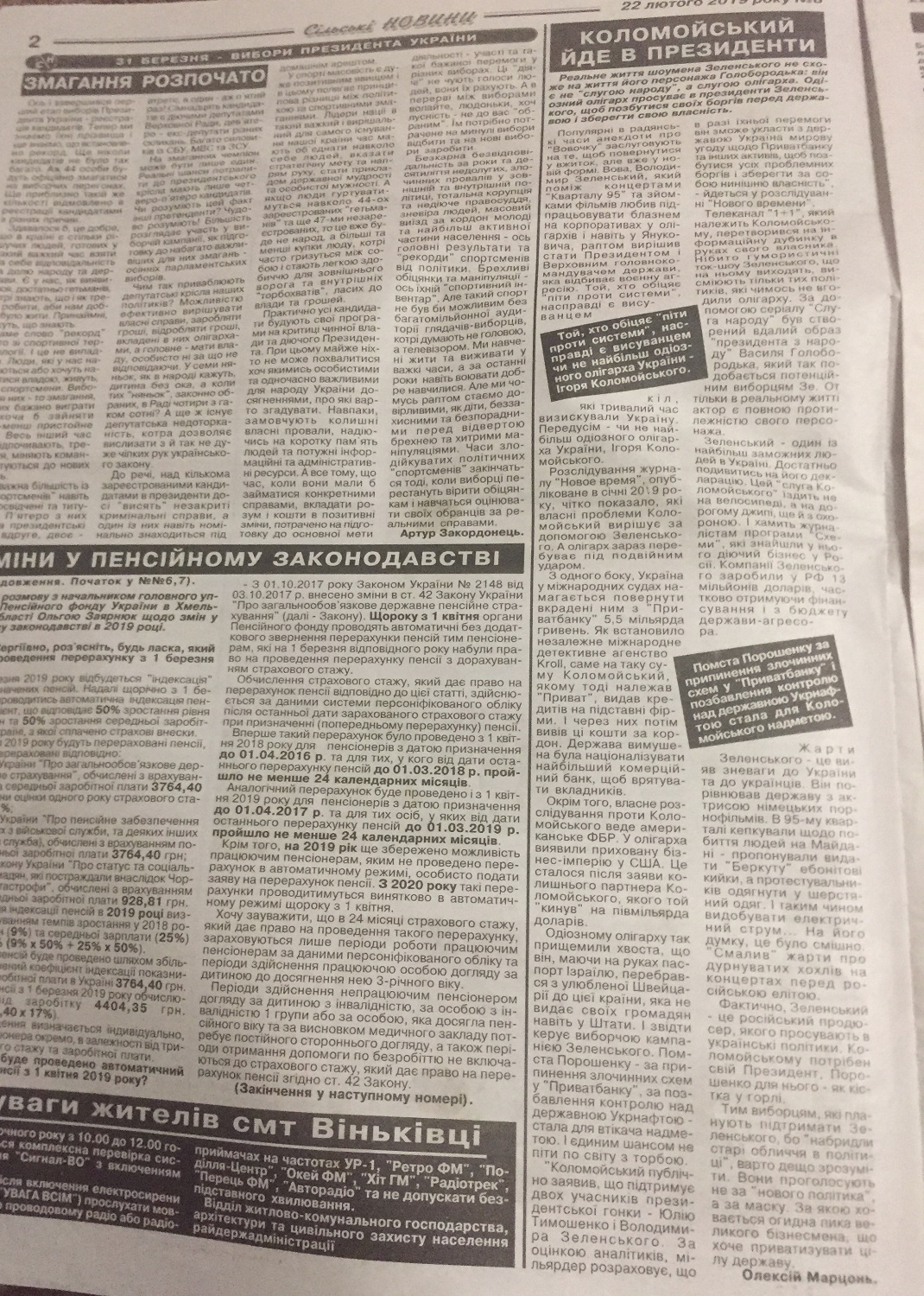 Спостерігачі ОПОРИ проаналізували 114 обласних та районних видань, що вийшли друком у Хмельницькій області в лютому, на наявність прихованої реклами кандидатів, партій, а також на присутність у виданнях виборчої тематики загалом. У підсумку моніторингу було виявлено 89 публікацій з ознаками «джинси» за кандидатів на пост Президента України: по 36 матеріалів на користь Петра Порошенка та Юлії Тимошенко, 8 – Олега Ляшка, 6 – Анатолія Гриценка та по одній публікації з ознаками прихованої реклами Руслана Кошулинського, Валентина Наливайченка та Володимира Зеленського. Натомість у січні в районних та обласних газетах Хмельниччини ОПОРА зафіксувала 74 матеріали з ознаками замовності на користь тоді ще потенційних кандидатів.