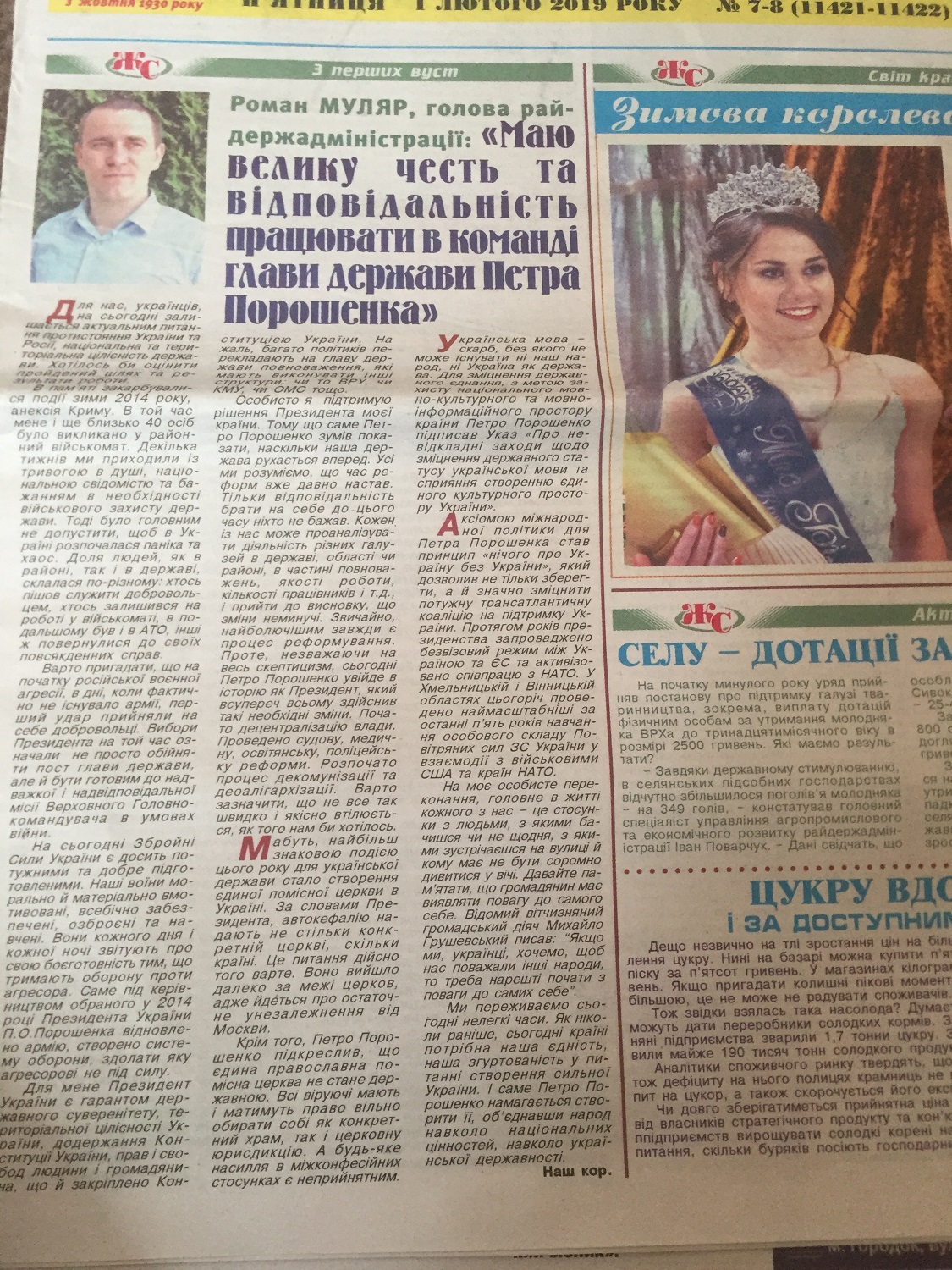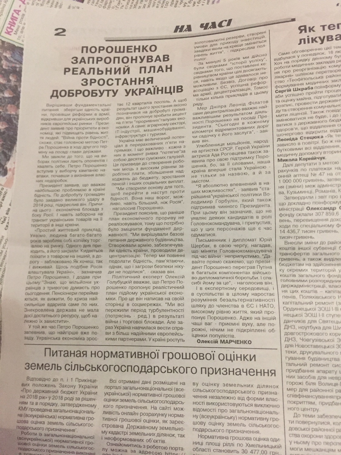 Окрім того, ОПОРА зафіксувала дві публікації, у яких голови Білогірської і Городоцької районних державних адміністрацій розповідають про переваги чинного Президента: «Роман Муляр, голова райдержадміністрації: «Маю велику честь та відповідальність працювати в команді глави держави Петра Порошенка» і «Вільній, незалежній, європейській Україні – бути!» за підписом голови Городоцької РДА Олени Матвєйцевої, яка підсумовує викладене в матеріалі такими словами: «Саме тому я підтримую діючого Президента України Петра Олексійовича Порошенка! Впевнена, що він зможе домогтися подальшої підтримки світової спільноти нашої держави, збереження незалежності та класичних українських традицій, національних цінностей, втілення реформ, які покращать життя українців, та економічного зростання України. Нам необхідна єдність – це запорука успіху України!»