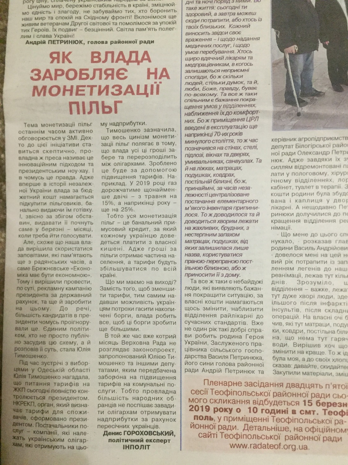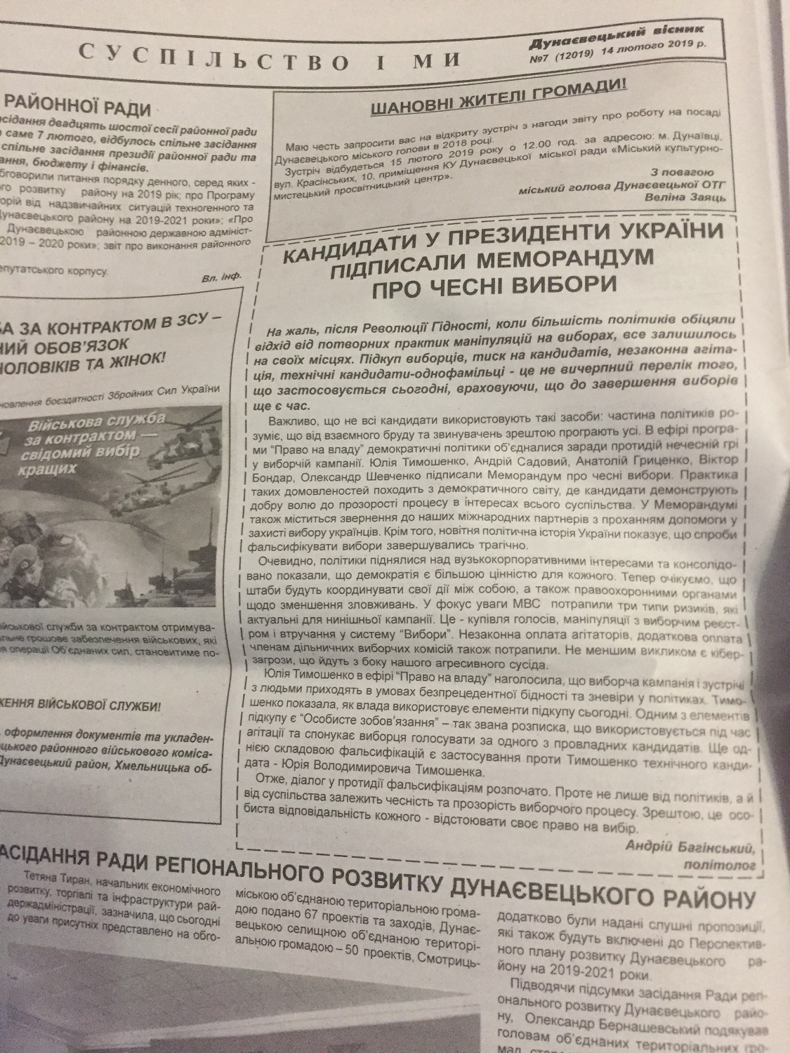 І якщо перший матеріал було опубліковано 1 лютого, коли Петро Прошенко ще не був зареєстрованим кандидатом, то другий вийшов друком 8 лютого, наступного дня після реєстрації кандидата. Тож, на думку координатора спостереження Громадянської мережі ОПОРА за виборами у Хмельницькій області, висловлювання голови РДА можна вважати такими, які порушують принцип рівності кандидатів.