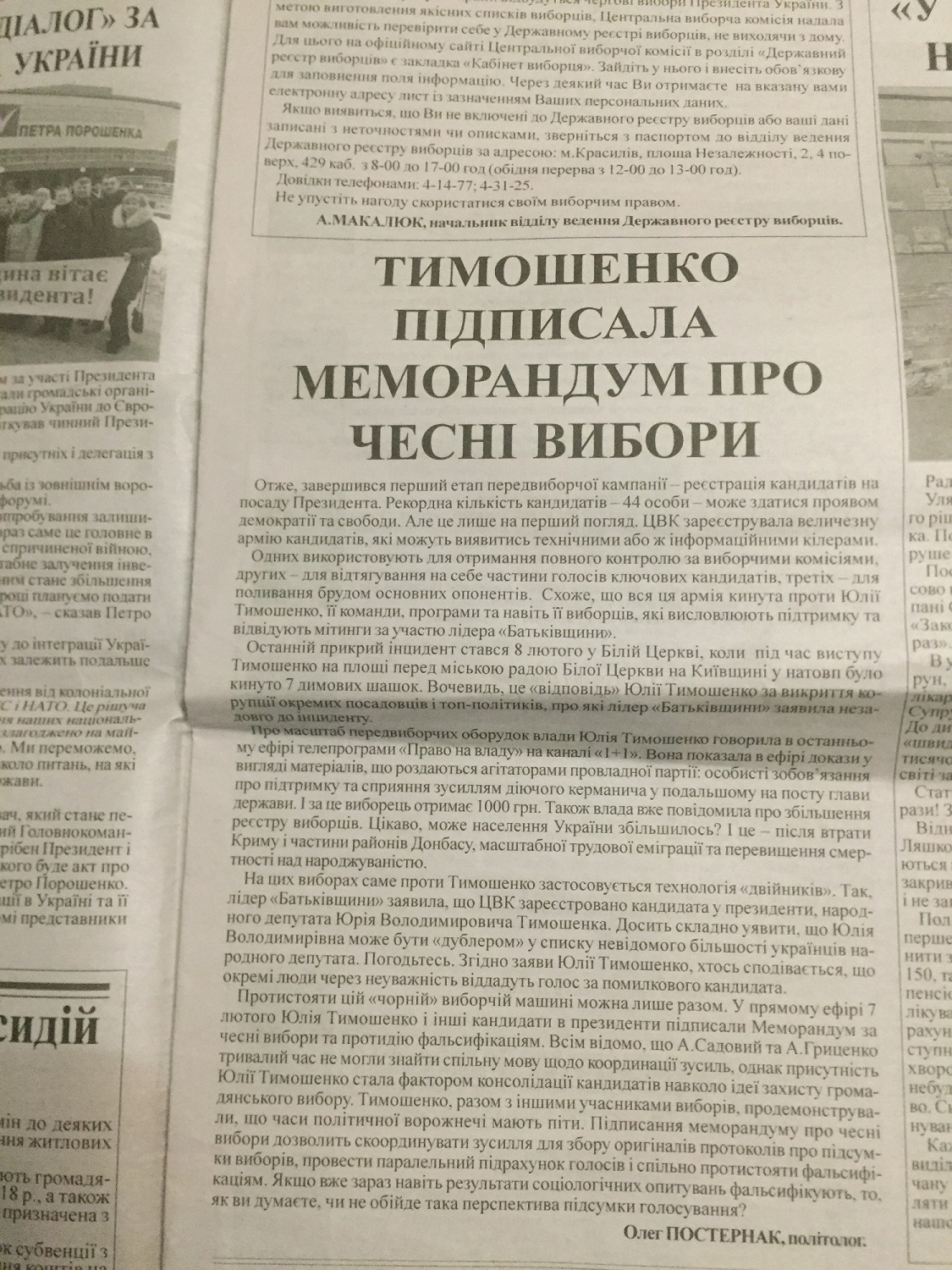 «Джинса» на користь Юлії Тимошенко теж повторюється у кількох газетах: «Безпекова конференція в Мюнхені: говорили про газ і про війну?» – у 5, матеріали «Кандидати у Президенти України підписали Меморандум про чесні вибори» та «Тимошенко підписала меморандум про чесні вибори» – у 4 виданнях кожен, «Чого виборці чекають від виборів?» – у 4, «Як влада заробляє на монетизації пільг» – у 2.