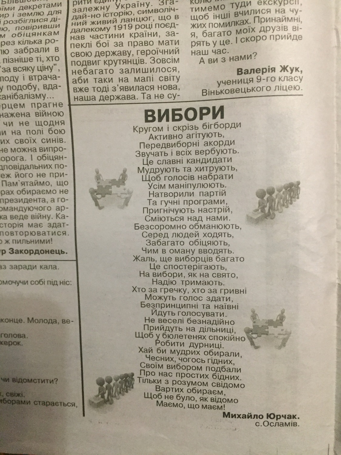 Назагал виборча тематика стає дедалі популярнішою у хмельницькій пресі. Окрім замовних матеріалів та політичної реклами, ОПОРА зафіксувала понад 40 публікацій, що стосуються виборів: це інформація про кандидатів, поради виборцям і навіть літературні твори – вірші та оповідання, присвячені виборчим перегонам.