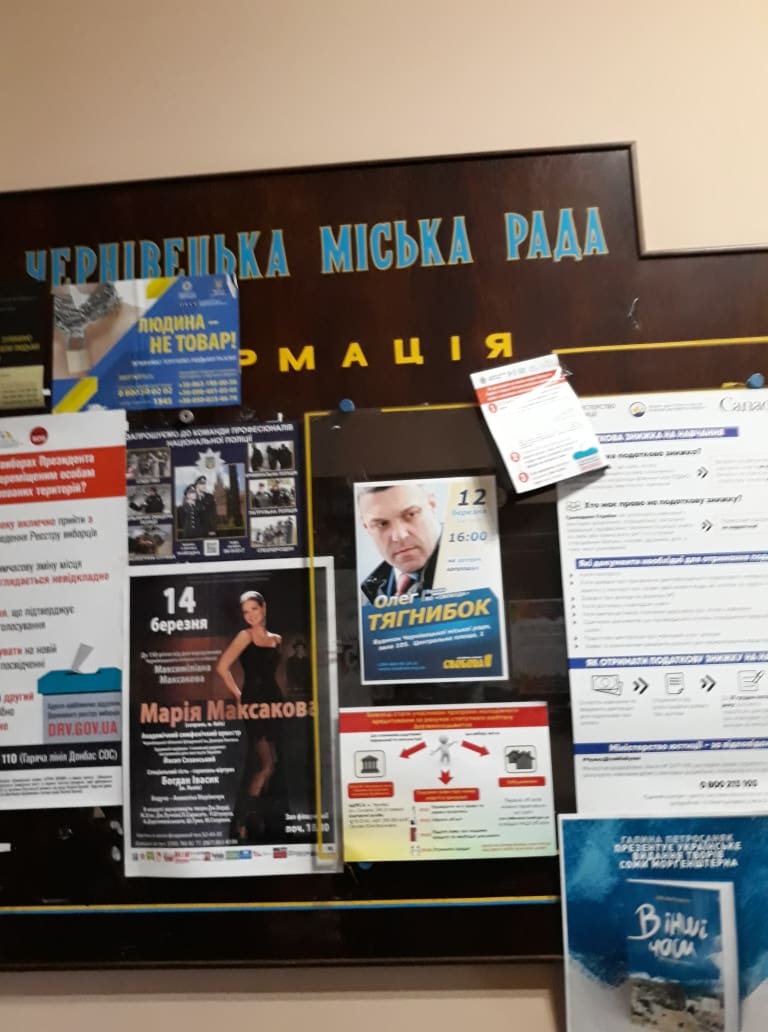 Під час зустрічі голови ВО «Свобода» Олега Тягнибока з громадськістю міста Чернівці та області в приміщенні Чернівецької міської ради були розміщені агітаційні матеріали. Представниця ОПОРИ викликала поліцію.