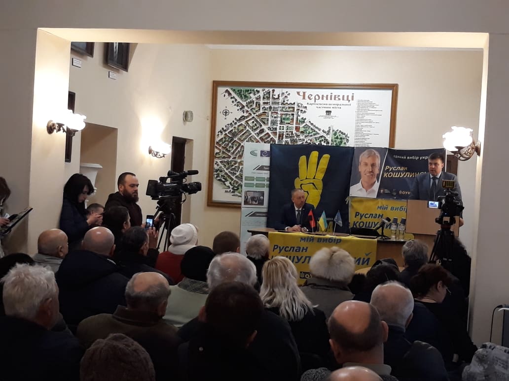 Під час заходу при вході та всередині приміщення Чернівецької міської ради спостерігачка ОПОРИ зафіксувала агітаційні матеріали. В залі, де відбувалась зустріч, був один банер з символікою партії ВО «Свобода», один із зображенням кандидата в Президенти Руслана Кошулинського та два прапори з написом «Мій вибір Руслан Кошулинський». Сам Олег Тягнибок у своєму виступі розповідав про пункти програми кандидата в Президенти Руслана Кошулинського, розказував його біографію та закликав голосувати за висуванця від партії «Свобода». Також присутнім на заході роздавали агітаційні папки, в яких були два календарі різного формату із зображенням Руслана Кошулинського, роздрукована передвиборча програма та дві партійні газети ВО «Свобода».