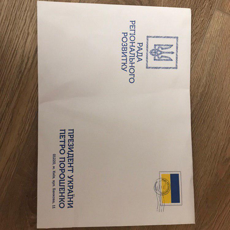 - Конверт, отримувачем якого є Президент України Петро Порошенко. На конверті вказано: «Не підлягає оплаті» згідно Договору №388-3756 від 20 грудня 2018 року, тираж 50000 екземплярів.