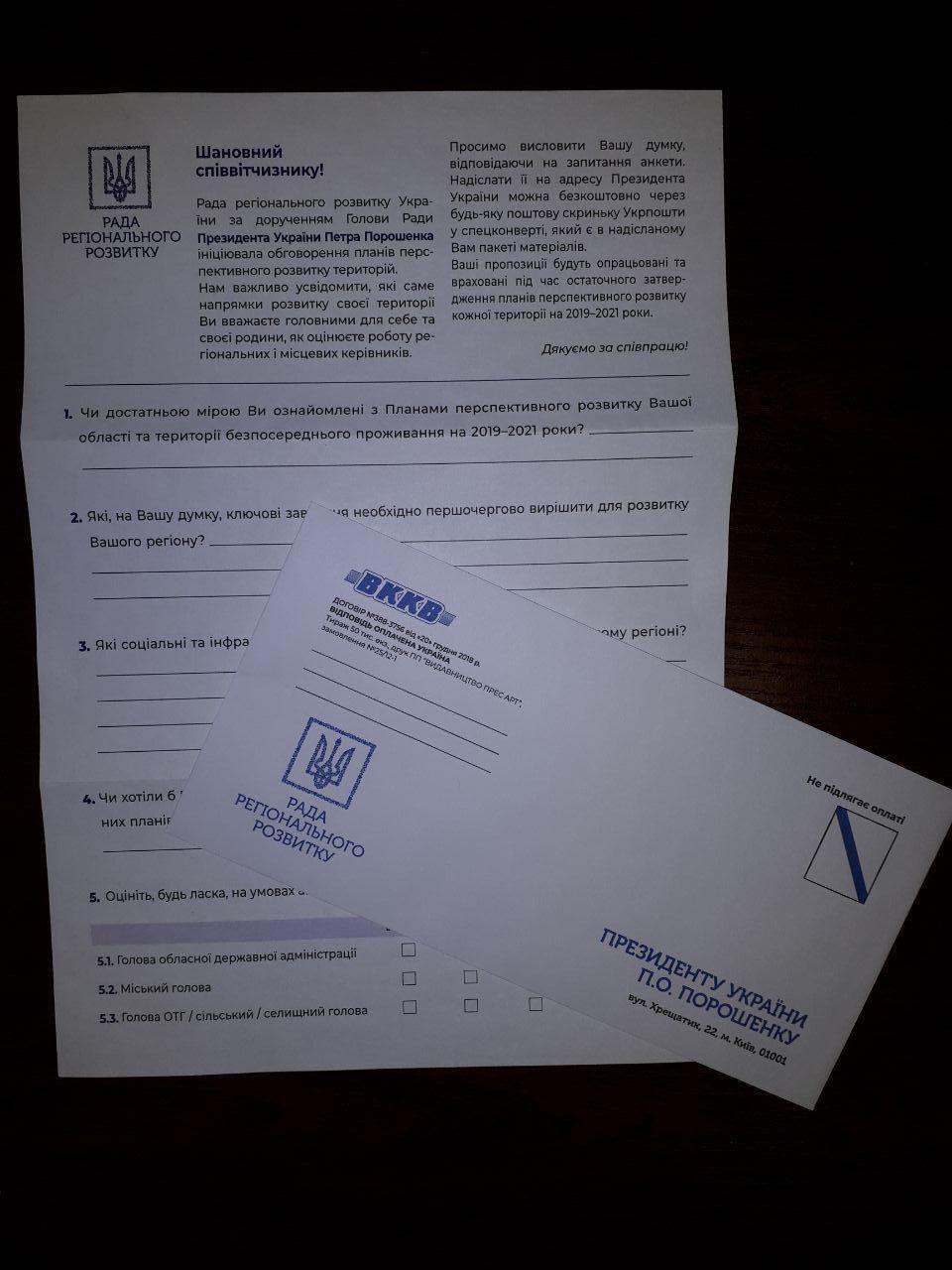 10 березня ввечері у під’їзді будинку по вулиці Курчатова міста Рівне дві жінки розносили конверти з написом «Рада регіонального розвитку» із зазначенням відправника «Президент України Петро Порошенко». Невідомі мали список, у ньому ставили відмітки, які квартири отримали конверти.