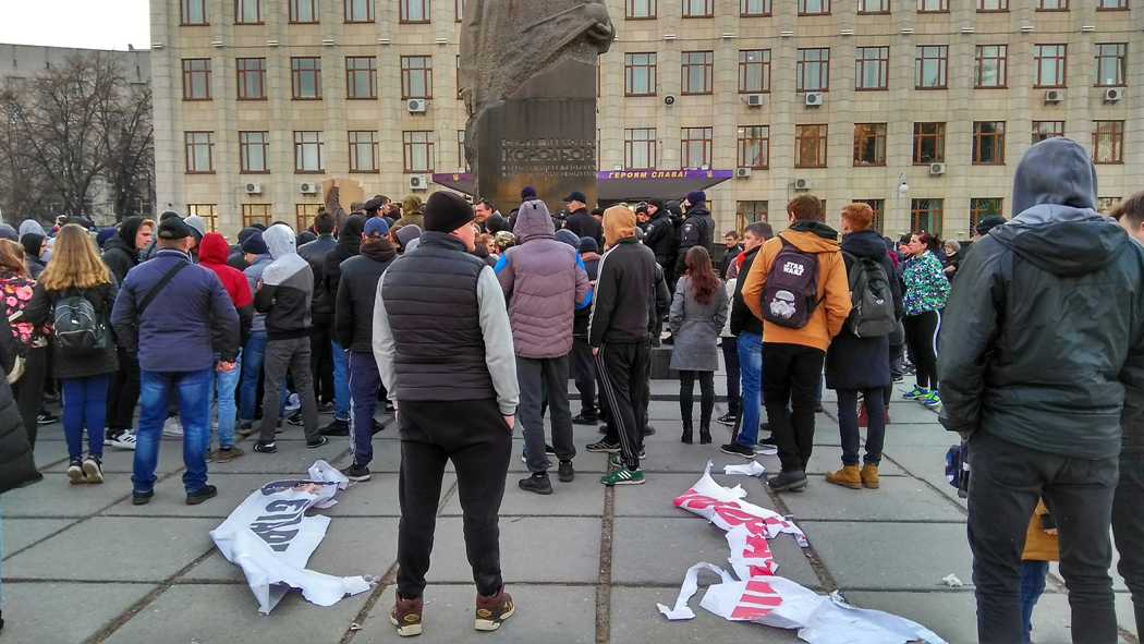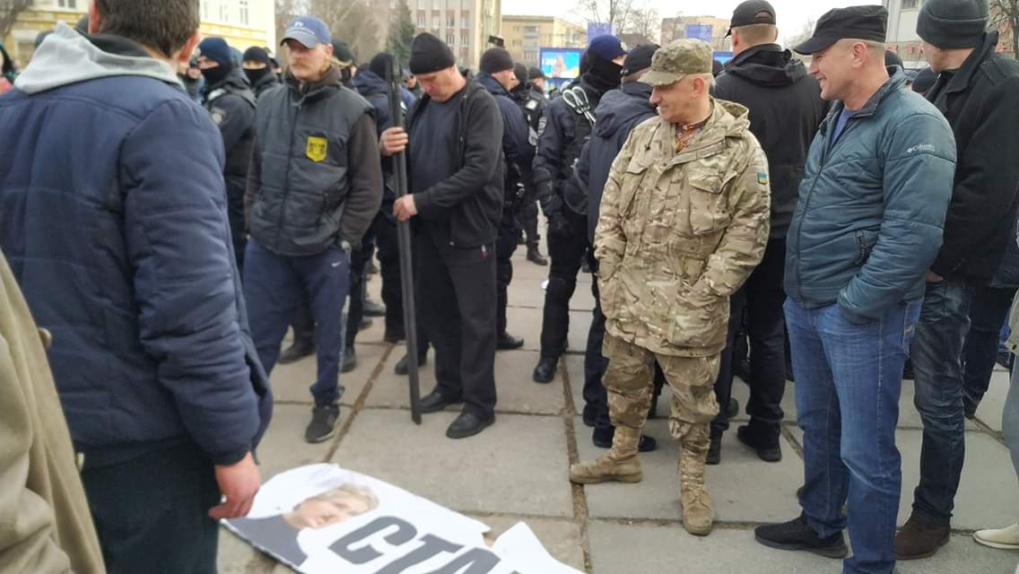 Під час виступу кандидатки близько 10 активістів спробували розгорнути плакати.