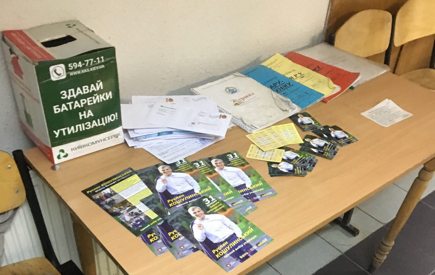 У гуртожитку №4 Київського національного університету технології та дизайну, що на вул. Кіквідзе, представники ОПОРИ зафіксували поширення агітаційних листівок кандидата в Президенти Руслана Кошулинського. Кілька десятків листівок та календариків із закликом голосувати за Кошулинського лежали поруч з інформаційним стендом у холі гуртожитку.
