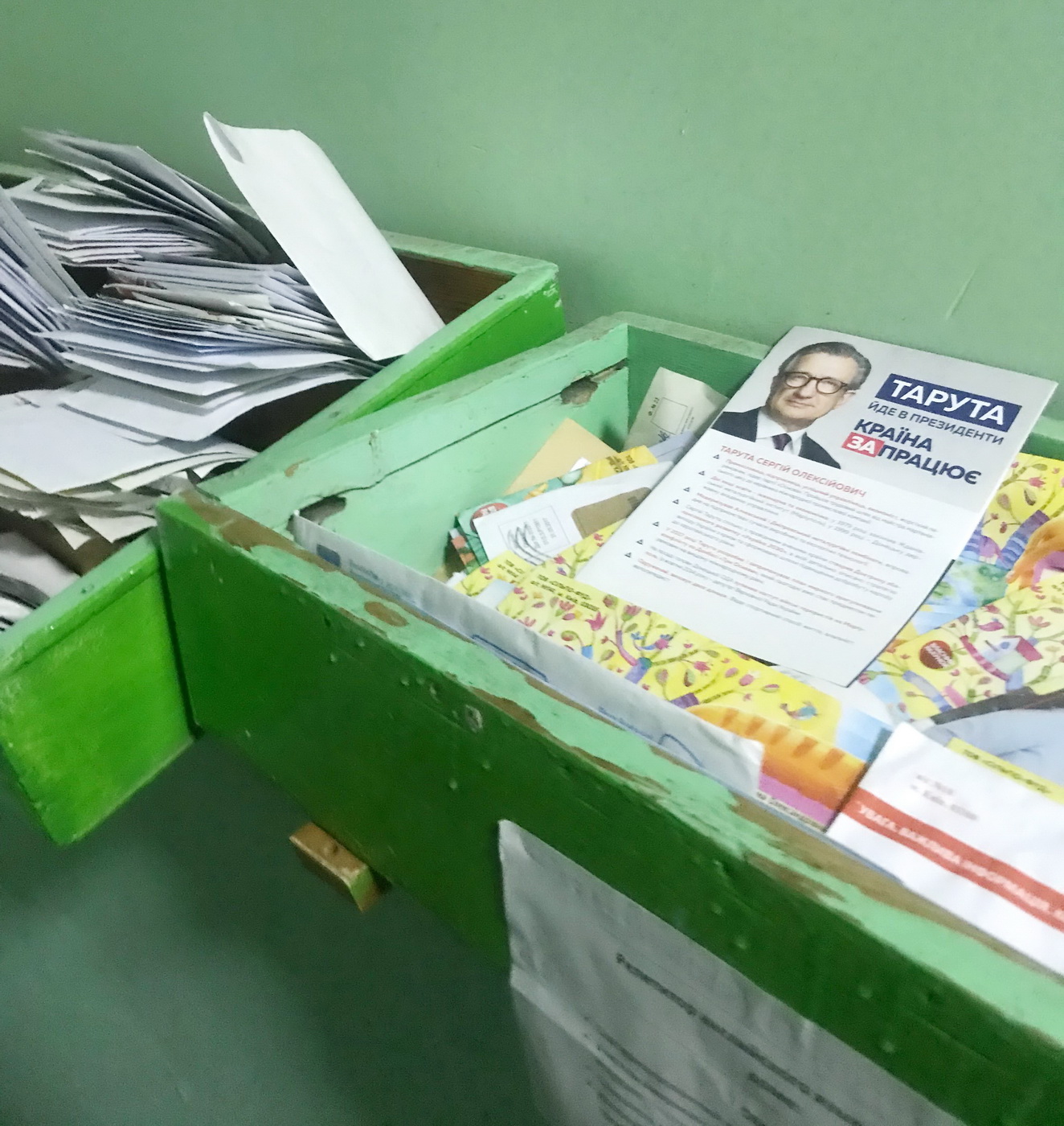 Водночас у гуртожитку Національної музичної академії України ім. П. І. Чайковського, що на вул. Маршала Тимошенка, представники ОПОРИ виявили агітаційні листівки кандидата в Президенти Сергія Тарути. Матеріали були розміщені в ящиках для пошти поруч із вхідними дверима.