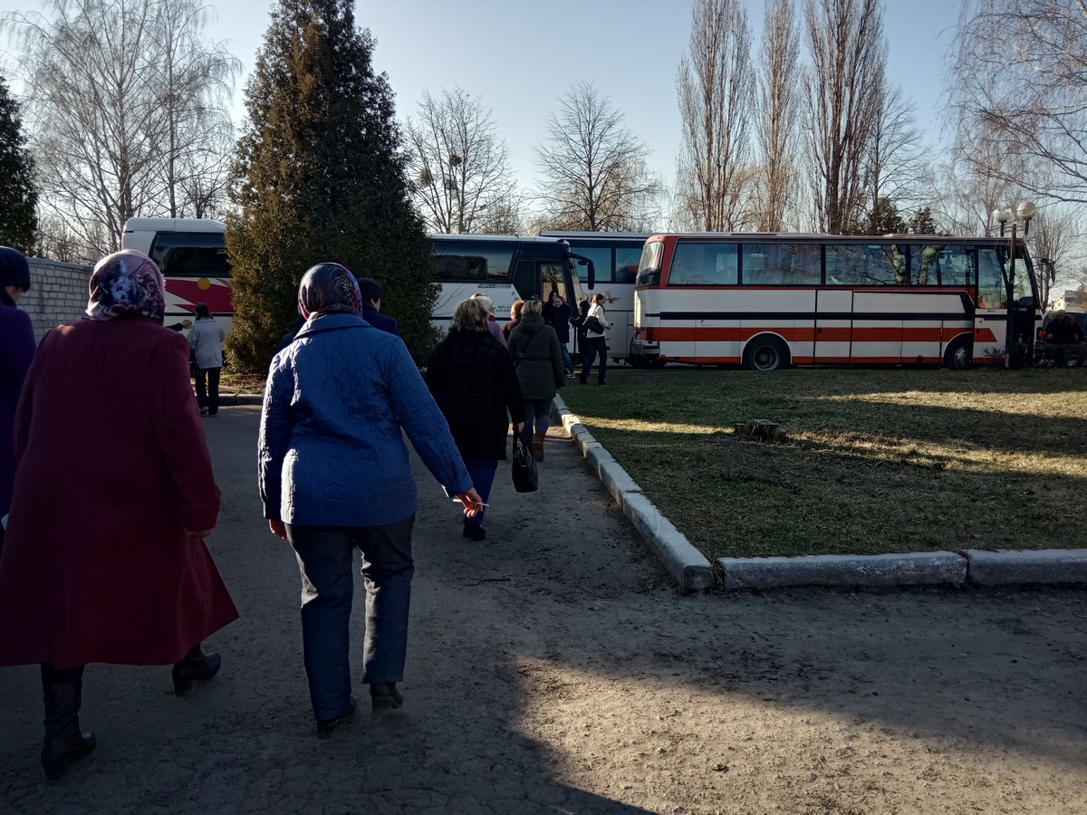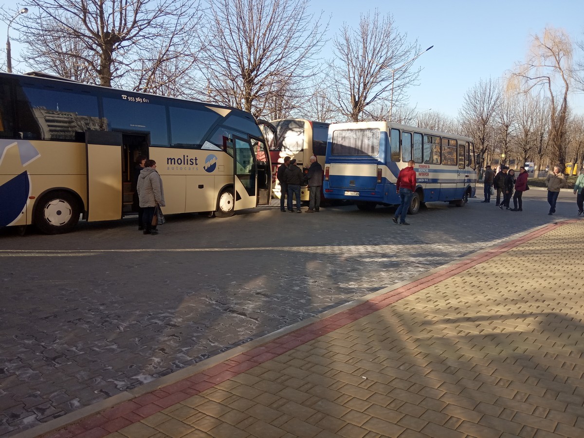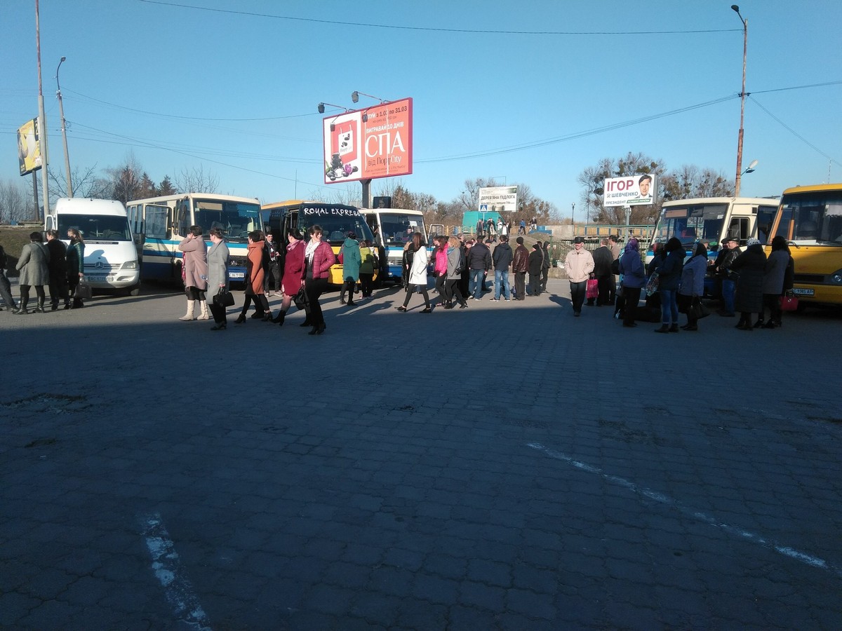 На питання, куди вирушає автобус, поблизу одного із транспортних засобів розповіли, що в селище Торчин. Люди, які постійно прибували на Набережну із центру, розсідалися у транспортні засоби.