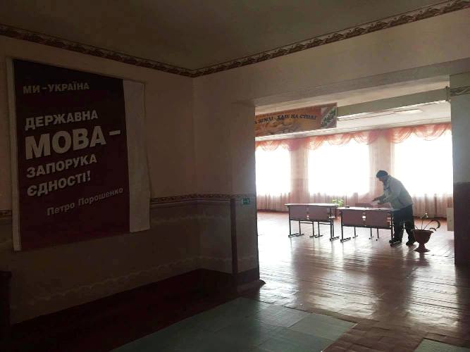 У коментарі ОПОРІ директор цієї школи Андрій Кулибаба зазначив: «Цей банер був наданий відділом освіти ще у жовтні місяці, і він висів там як звичайний банер, на якому розміщене прізвище нашого чинного Президента Петра Олексійовича Порошенка із словами"Мова і Єдина Україна". Я думаю, він ніякої агітаційної інформації"не ніс у собі». Керівник закладу повідомив що у понеділок, 25 березня банер зняли.