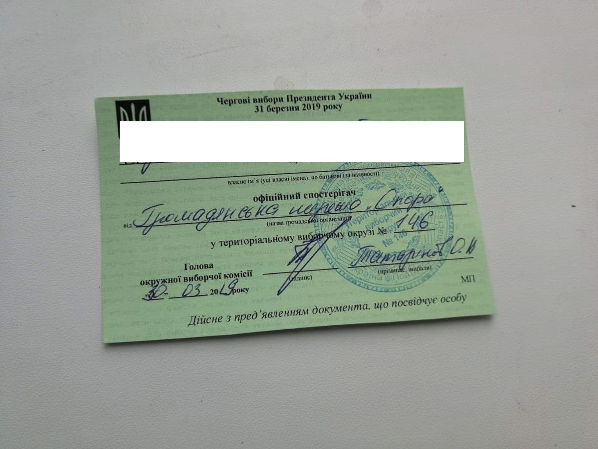 Станом на вечір 29 березня ОВК №146 не видала представникам ОПОРИ посвідчення спостерігачам. Відносно даного випадку ОПОРА звернулась до поліції з заявою.