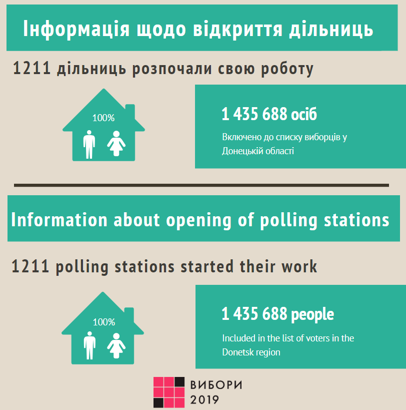 «Всі 100% дільниць (1 211) розпочали свою роботу. Протягом дня ми будемо виходити у прямі ефіри о 13:00, 17:00 та у 21:00. У цьому році ми спостерігаємо великий наплив офіційних спостерігачів, серед яких 89 662 – спостерігачі громадських організацій та 2344 – іноземні спостерігачі», – зауважила координаторка спостереження ОПОРИ за виборами в Донецькій області.