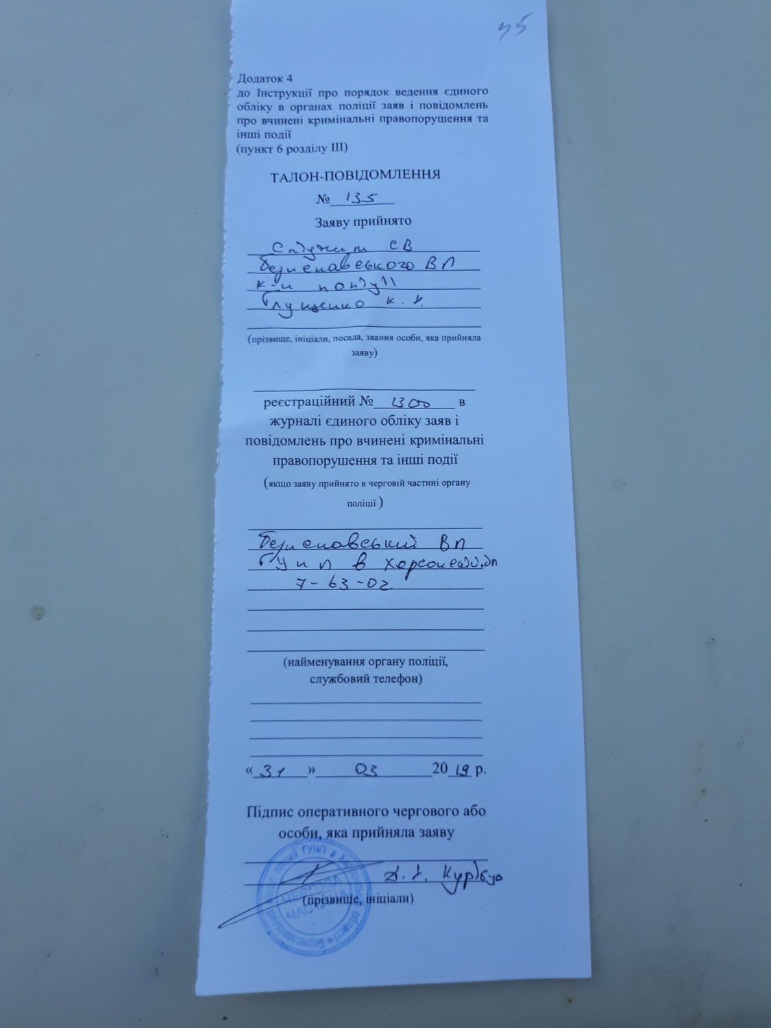 Начальник відділу комунікації херсонської Нацполіції Ірина Атаманенко в коментарі ОПОРІ зазначила: «Під час перевірки поліцейські встановили, що вказані жінки є спостерігачами від одного з кандидатів в Президенти України. Інформація про можливі порушення виборчого законодавства не підтвердилася».