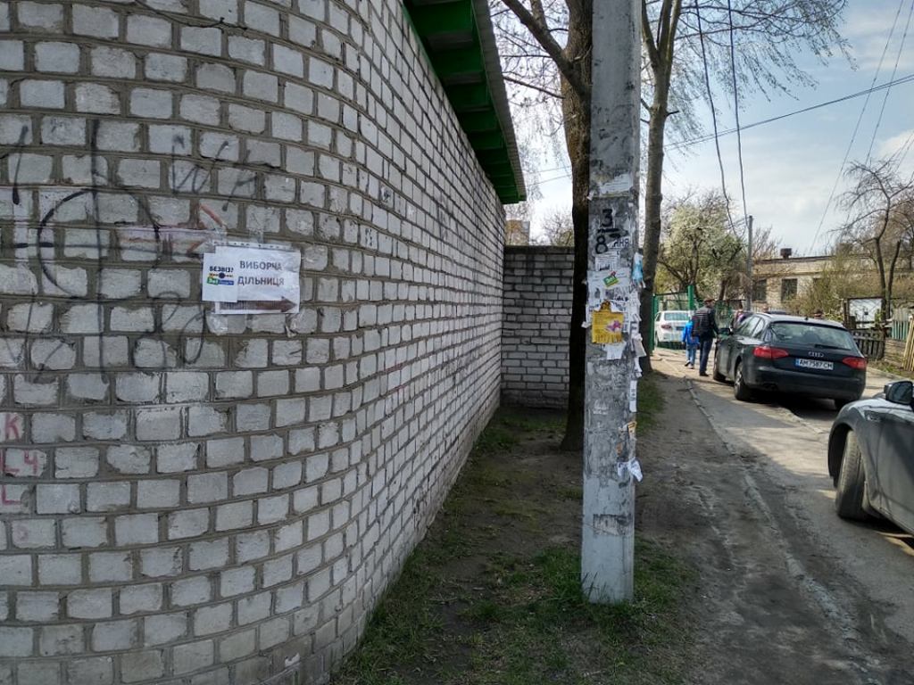 У Житомирі на будівлі, в якій знаходиться виборча дільниця №181380 (ВО №67), розклеїли листівки з ознаками «чорного піару» проти кандидата в Президенти Володимира Зеленського, а також приховану агітацію.