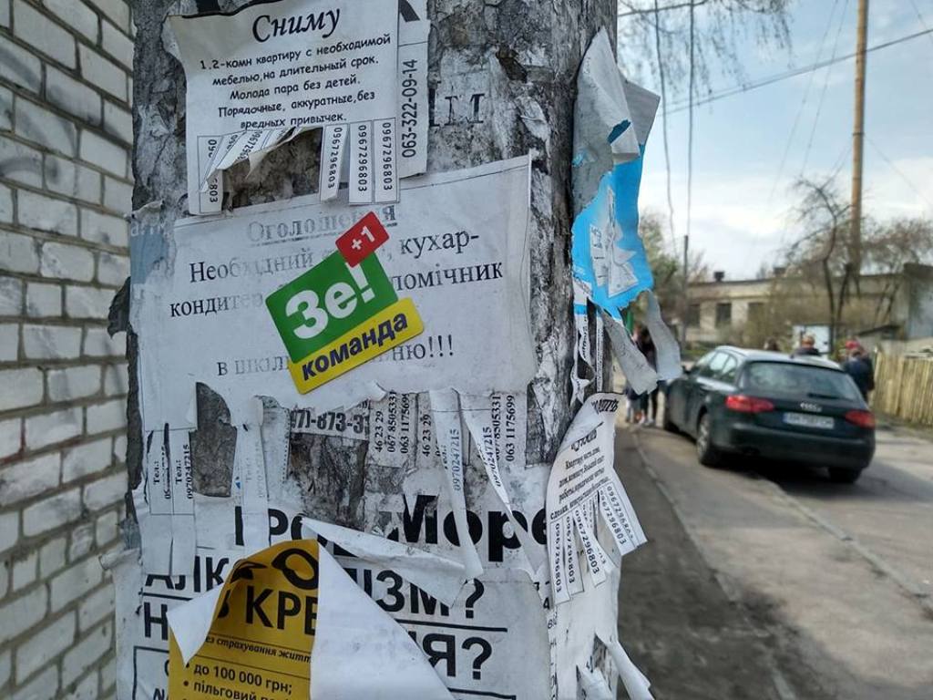 Як повідомляла ОПОРА, у центрі Житомира 18 квітня на парканах, дверях будівель та електроопорах невідомі розклеїли листівки та наліпки з ознаками «чорного піару» проти кандидата в Президенти Володимира Зеленського.