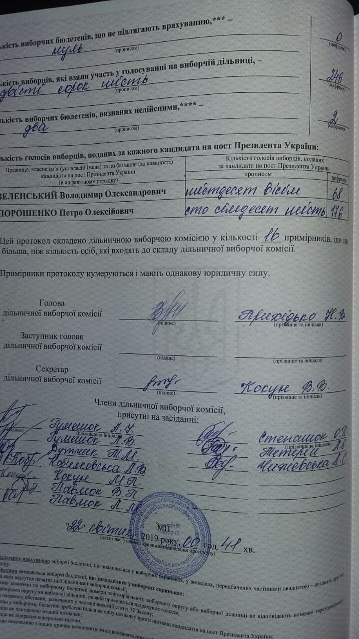 У більшості х перелічених випадків спостерігачі ОПОРИ отримали копії протоколів про результати виборів на дільницях 21 квітня до 23:00, в окремих випадках до опівночі. Однак в усіх копіях протоколів і, відповідно, самих протоколах була зазначена дата 22 квітня.