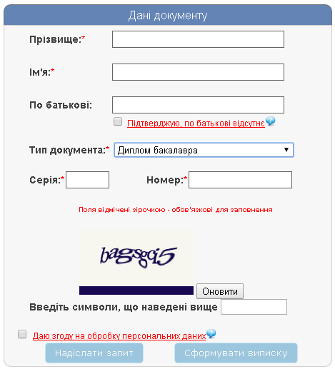 Аби уникнути непорозумінь, які можуть виникнути під час вступу на основі освітньо-кваліфікаційного рівня "молодший спеціаліст" та "бакалавр", цього року абітурієнти мають можливість перевірити справжність та наявність внесення документа про отримання певного ОКР в Єдиній державнній електронній базі з питань освіти. Для цього випускнику необхідно перейти за посиланням http://www.inforesurs.gov.ua/info-per/inforesurs-per-doc.php та заповнити поля для обробки запиту для отримання інформації.