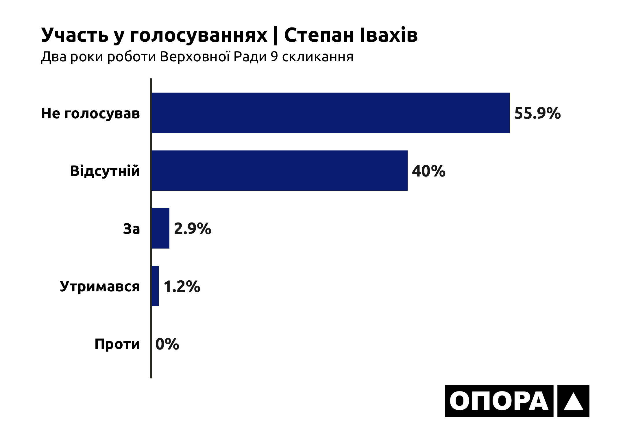 275 голосувань «За» (2,9%) має на своєму рахунку народний депутат Степан Івахів. «Проти» нардеп голосував лише 2 рази, а 115 разів (у 1,2% випадків) – «Утримався». «Не голосував» народний обранець 5 тис. 353 рази (у 55,9% випадків). Ще пі час 3 тис. 837 голосувань (40%) був відсутній.