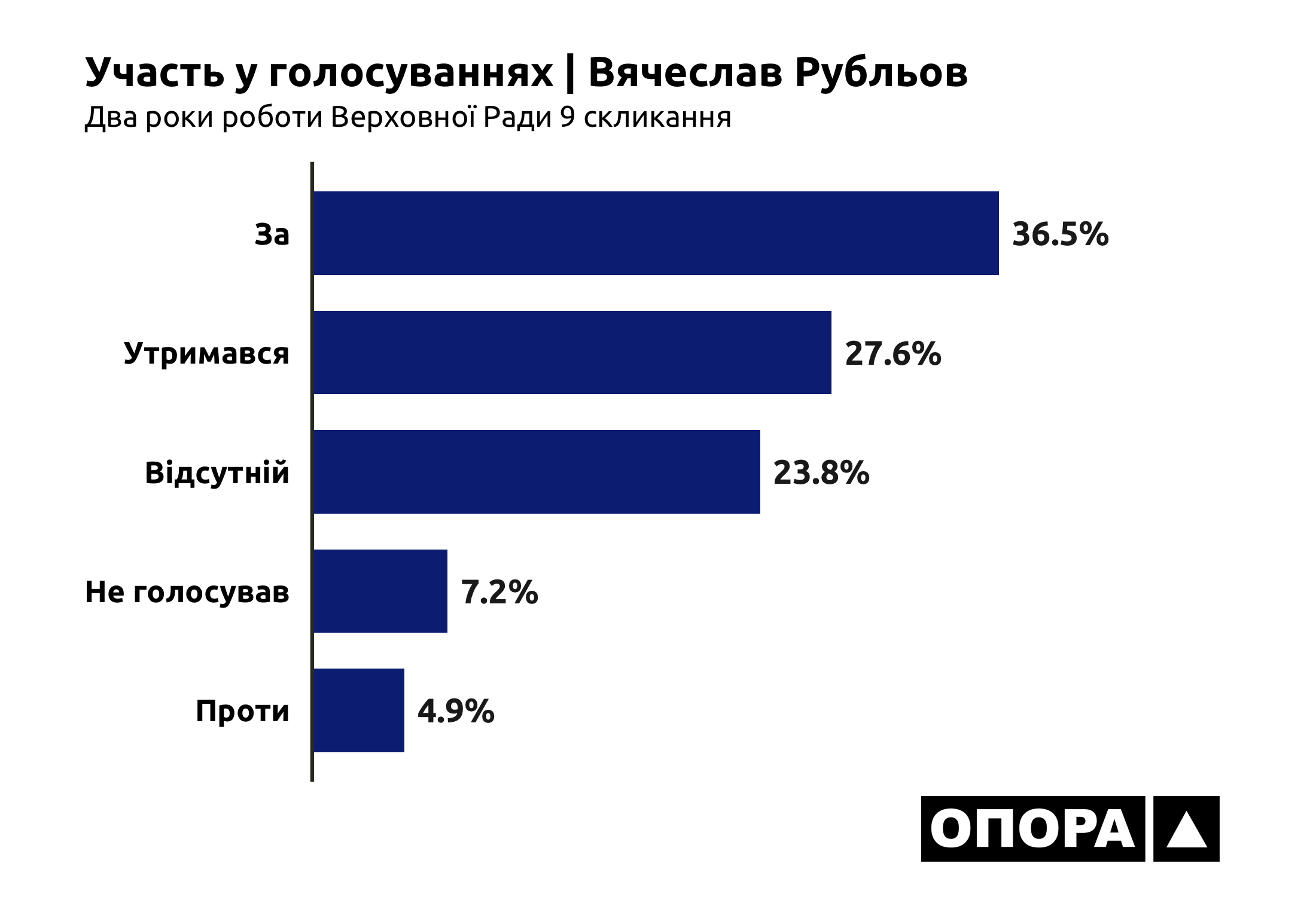 Народний депутат Вячеслав Рубльов натискав кнопку «За» під час 3 тис. 495 голосувань (36,5%), «Проти» – під час 475 голосувань (4,9%), «Утримався» – під час 2 тис. 644 голосувань (27,6%). Разом з тим, нардеп обирав позицію «Не голосувати» у 690 випадках (7,2%), а під час 2 тис. 278 голосувань (23,8%) був відсутній.