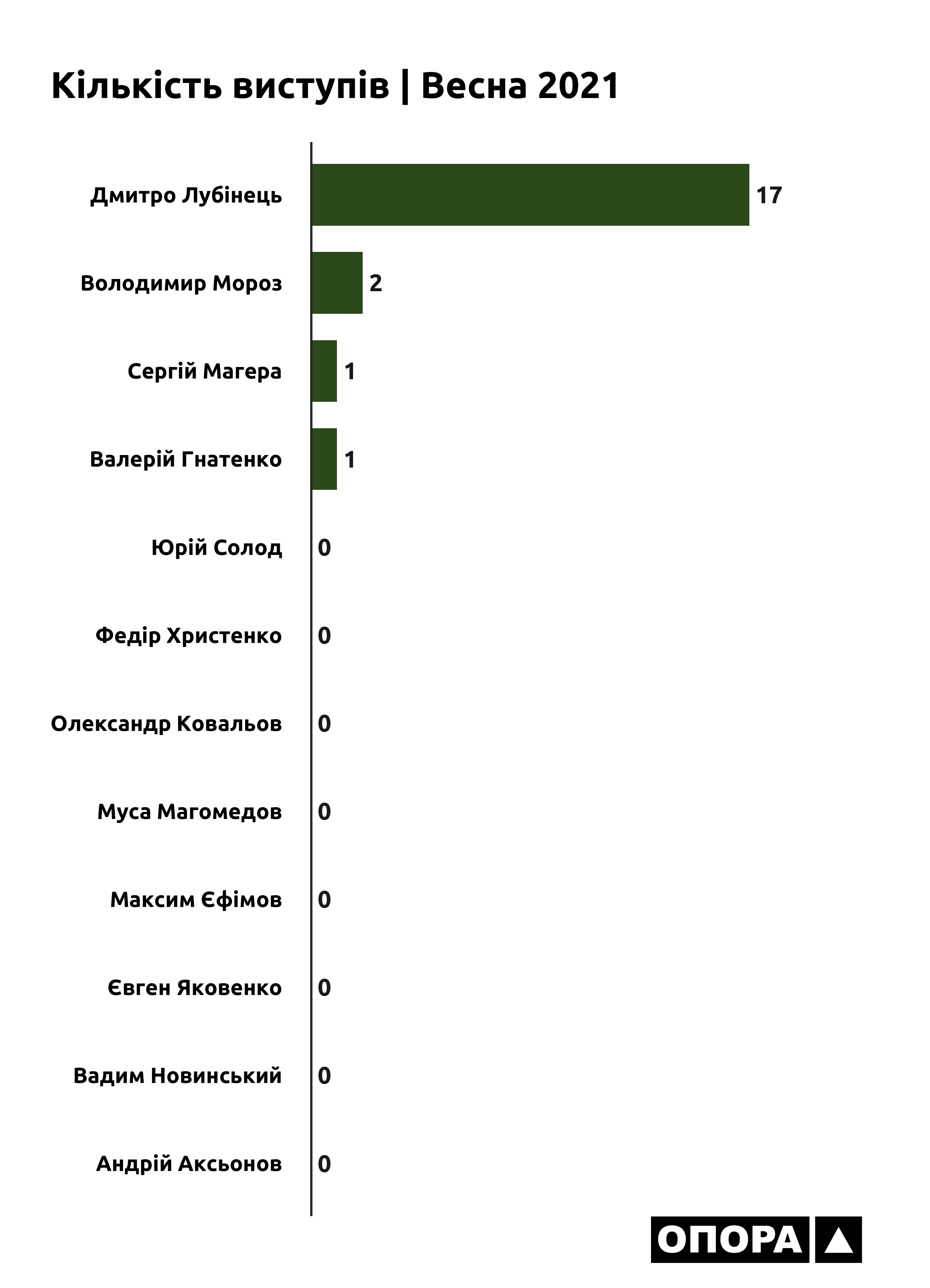 Наостанок зазначимо, що нардепи-мажоритарники з Донеччини мало користуються можливістю виступів у Раді – тільки 4 з 12 мажоритарників брали слово з трибуни. Частіше за інших, а саме 17 разів цим правом користувався Дмитро Лубінець з партії «За майбутнє». Загалом він «проговорив» 29 хвилин 42 секунди. Дві спроби виступити брав представник «Опозиційної платформи – За життя» Володимир Мороз та по разу – його колега по фракції Валерій Гнатенко та позафракційний Сергій Магера. І ці промови тривали від 6 секунд до 2 хвилин с гаком.