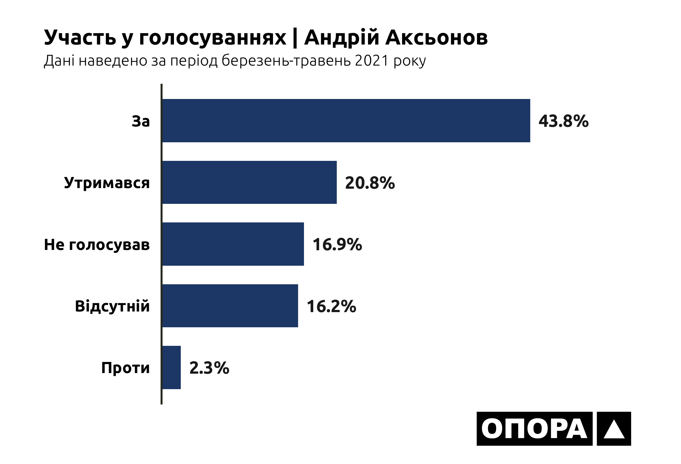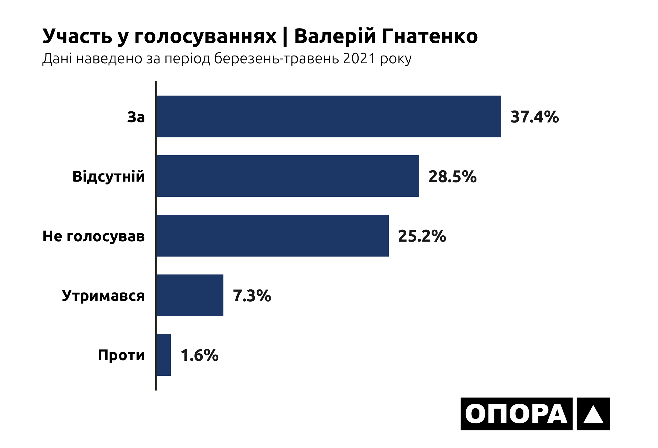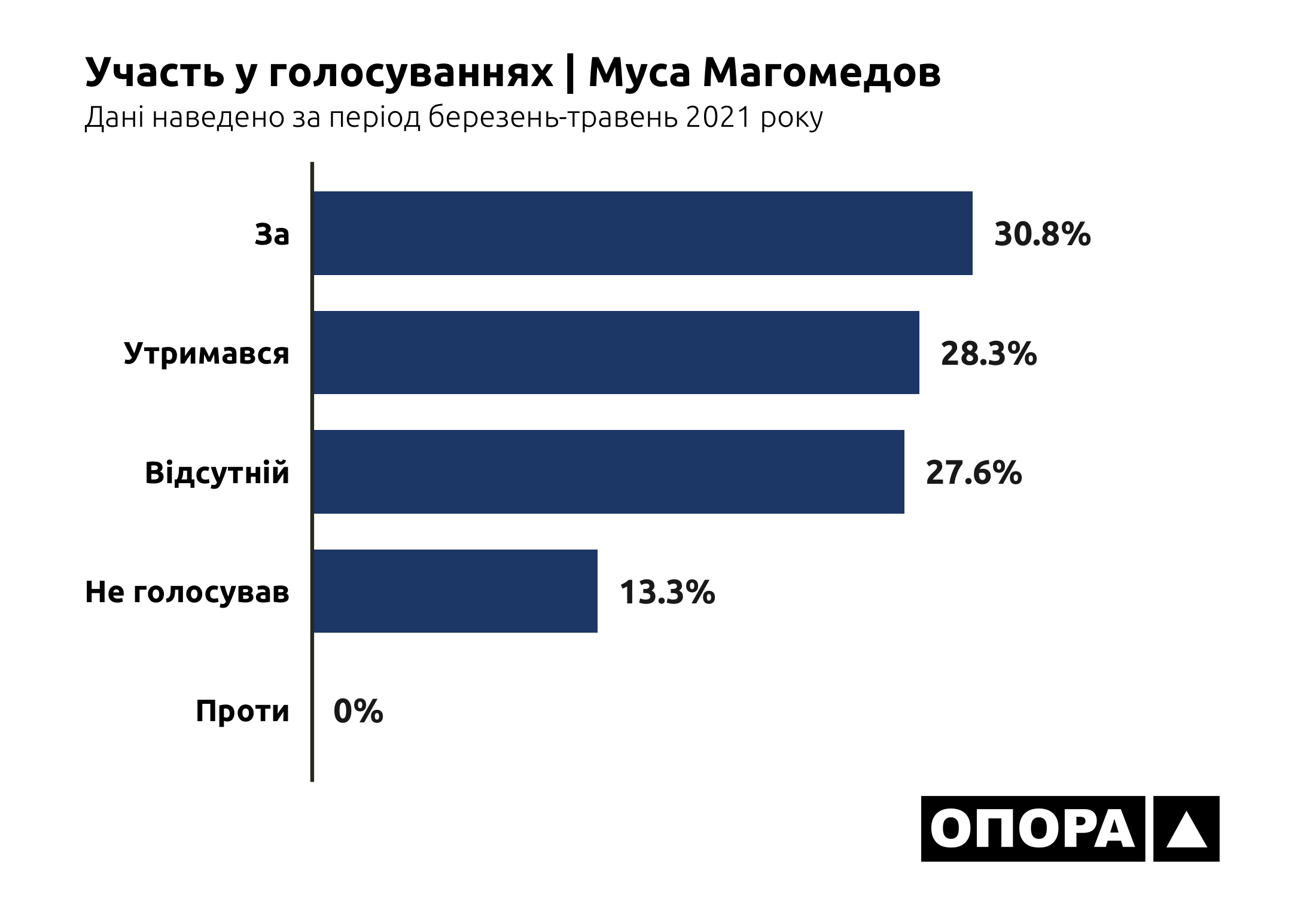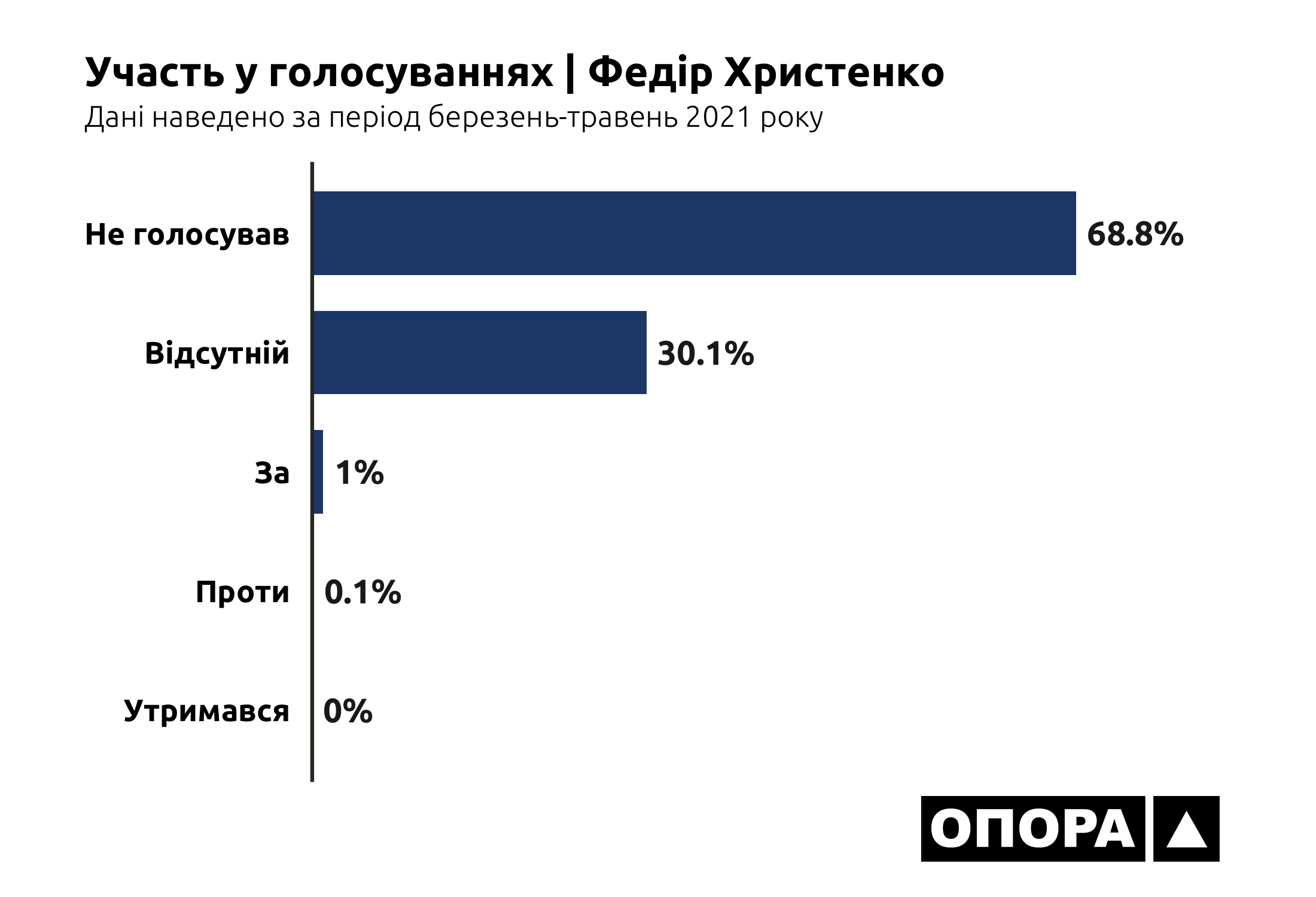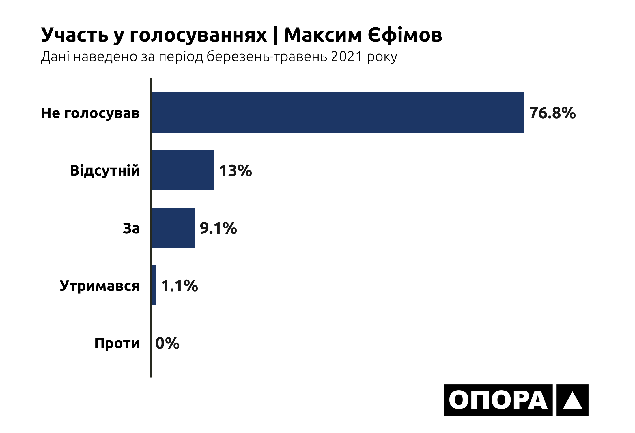 В більшості випадків, а це 6948 голосувань чи 35,3% від загальної кількості, депутати взагалі були відсутні на засіданнях. Ще 4532 (23%) раз представники Донецької області в парламенті не голосували, 2073 (10,5%) раз утримувалися. І тільки в третині випадків депутати з Донеччини хоч якось голосували – в 6042 голосуваннях «за» та в 93 голосуваннях «проти». Тож ОПОРА дослідила, хто з депутатів рідше за інших з’являється на засідання, скільки законопроєктів представники Донеччини ініціювали для розгляду та як вони голосують за конкретні ініціативи.
