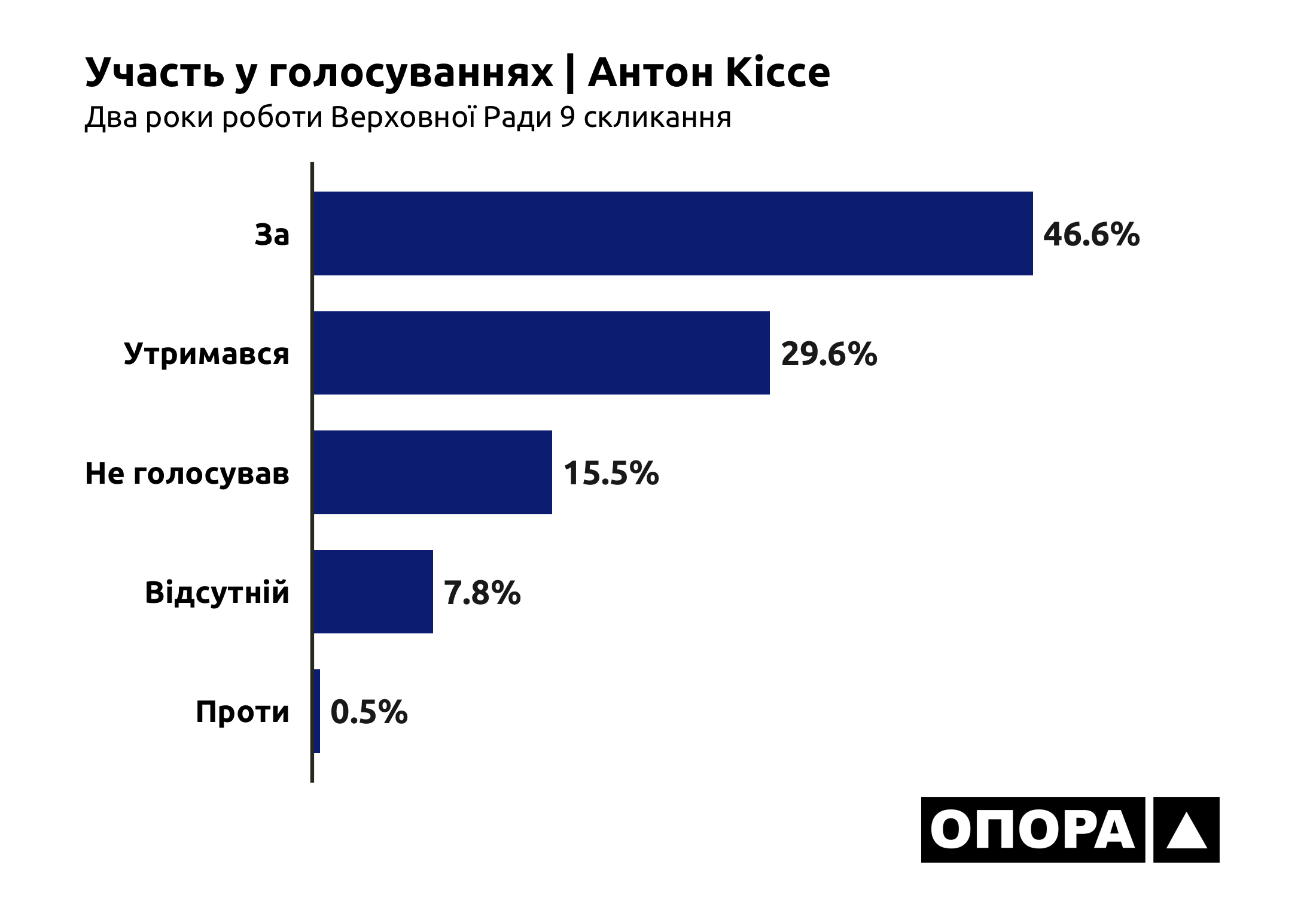 Голосування Антона Кіссе та Анатолія Урбанського у 33,3% та 32,1% голосувань відповідно відрізняються від того, як голосували представники депутатської групи «За майбутнє», до якої входять вказані депутати.