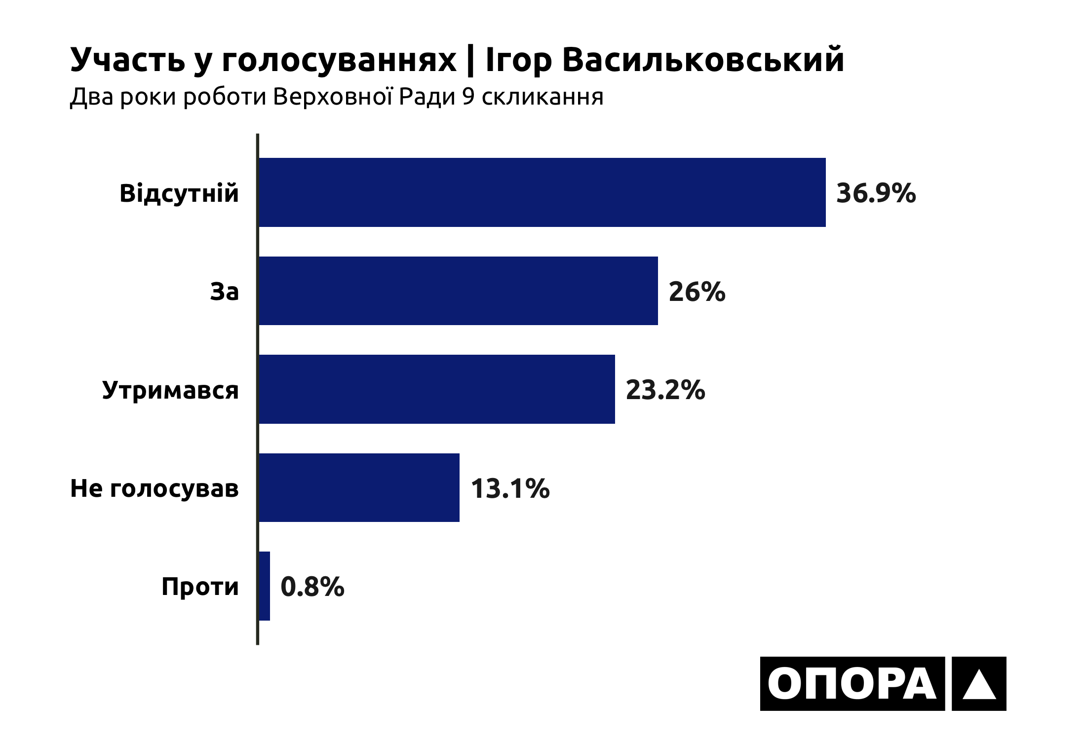Протягом двох років здійснення своїх повноважень з 11 одеських мажоритарників жодного разу не брали слово для виступу одразу троє народних депутатів – Ігор Васильковський, Олег Колєв і Степан Чернявський.