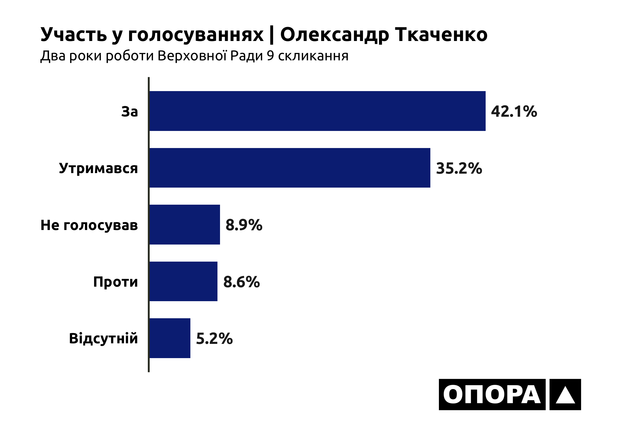 П’ять із 47 законопроєктів, поданих Олександром Ткаченком, були затверджені: