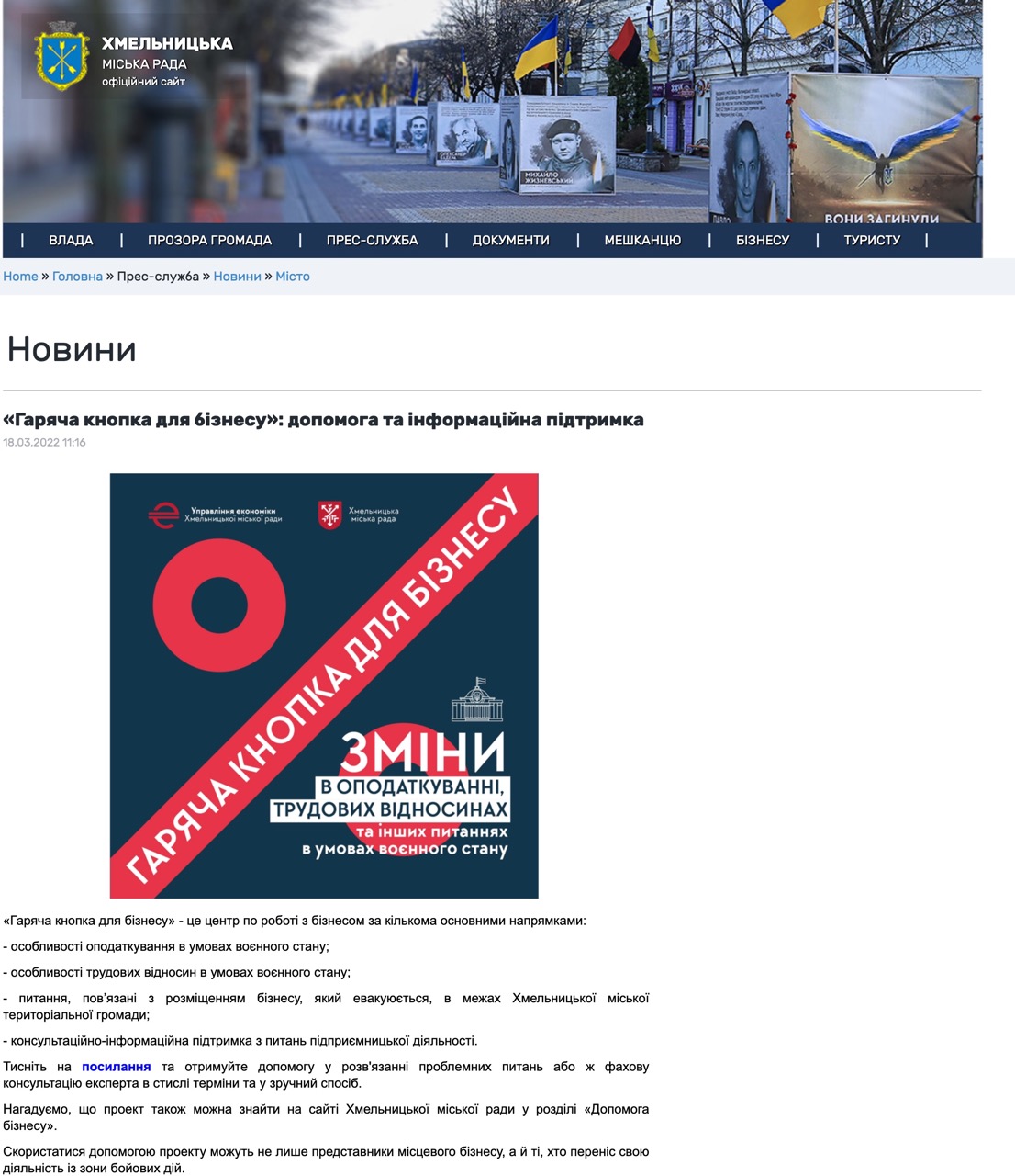 Для підприємців у місті започаткували проєкт «Гаряча кнопка для бізнесу», що має на меті допомогти бізнесу вирішити проблеми у їхній діяльності чи отримати фахову консультацію експерта.