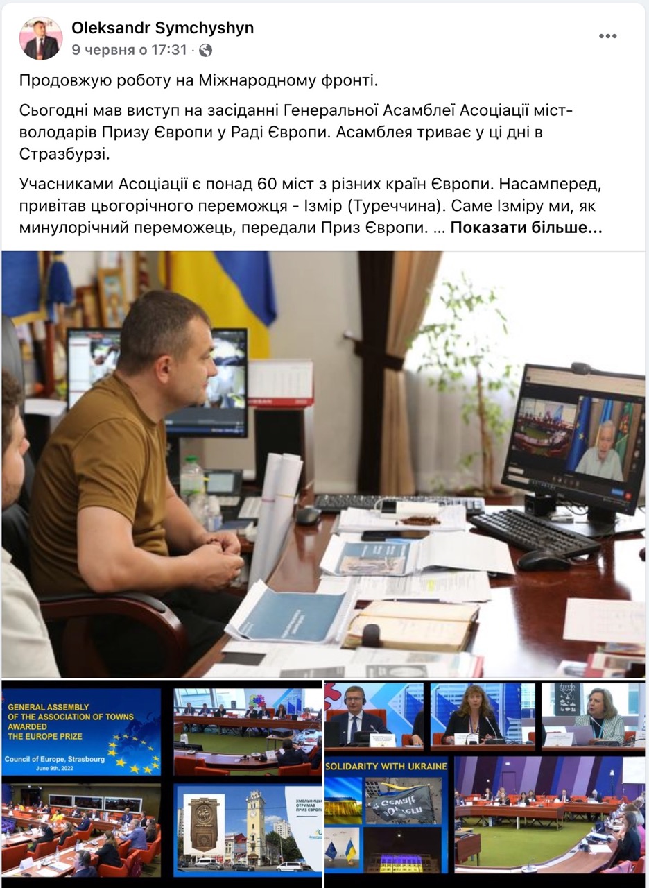 «Моя місія в тому числі і політична, зокрема, я доношу лідерам та осіб низкам громад, депутатам місцевих рад, урядам міст, місцевим ЗМІ, а також мешканцям міст інформацію про війну з рашистською росією. Пояснюю, чому ця війна для нас цивілізаційна, світоглядна, чому ми вважаємо, що захищаємо всю Європу і справжні європейські цінності. Чому нам ще і ще потрібна допомога та підтримка. Також мої виступи мають гуманітарну складову. Після кожного виступу ми отримуємо різну гуманітарну допомогу», – так пояснював цей напрямок своєї роботи міський голова Хмельницького Олександр Симчишин.