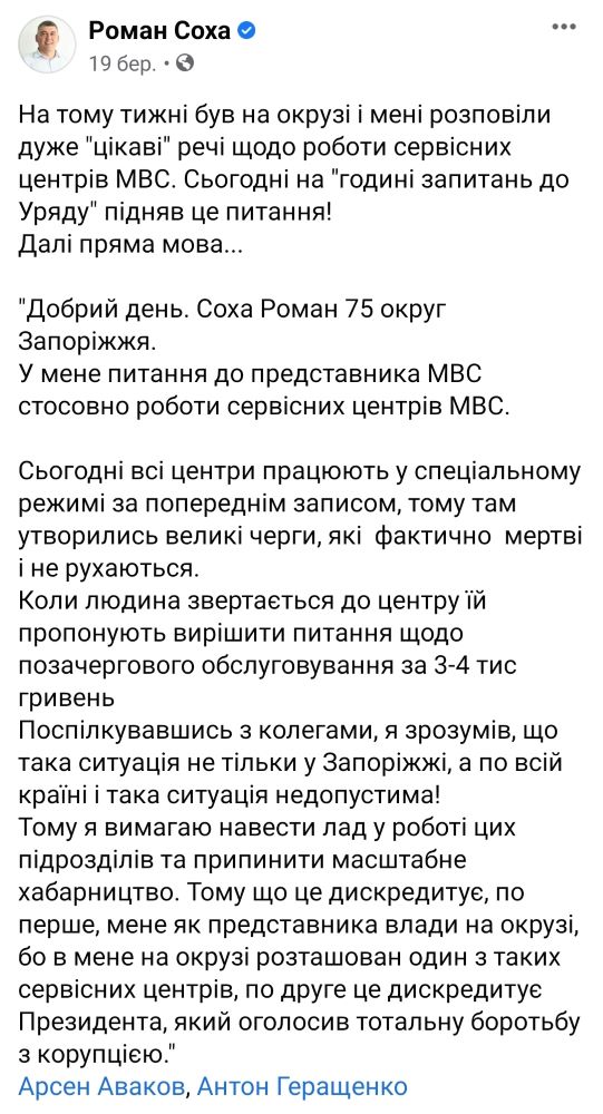 Роман Соха за поданням від політичної партії «Слуга народу»