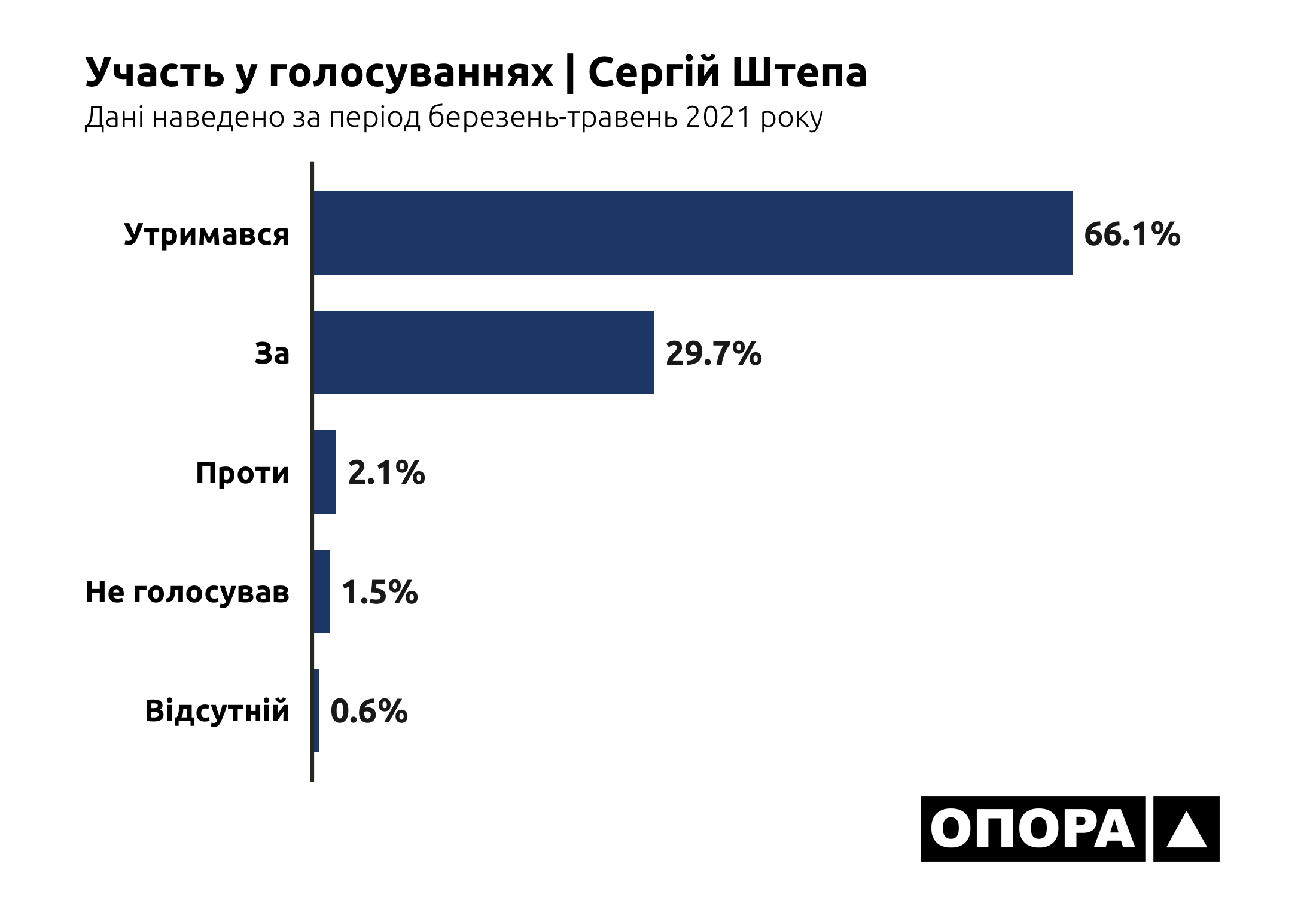 Серед запорізьких мажоритарників Сергій Штепа має рекордний показник присутності під час голосувань у сесійній залі – 99%.