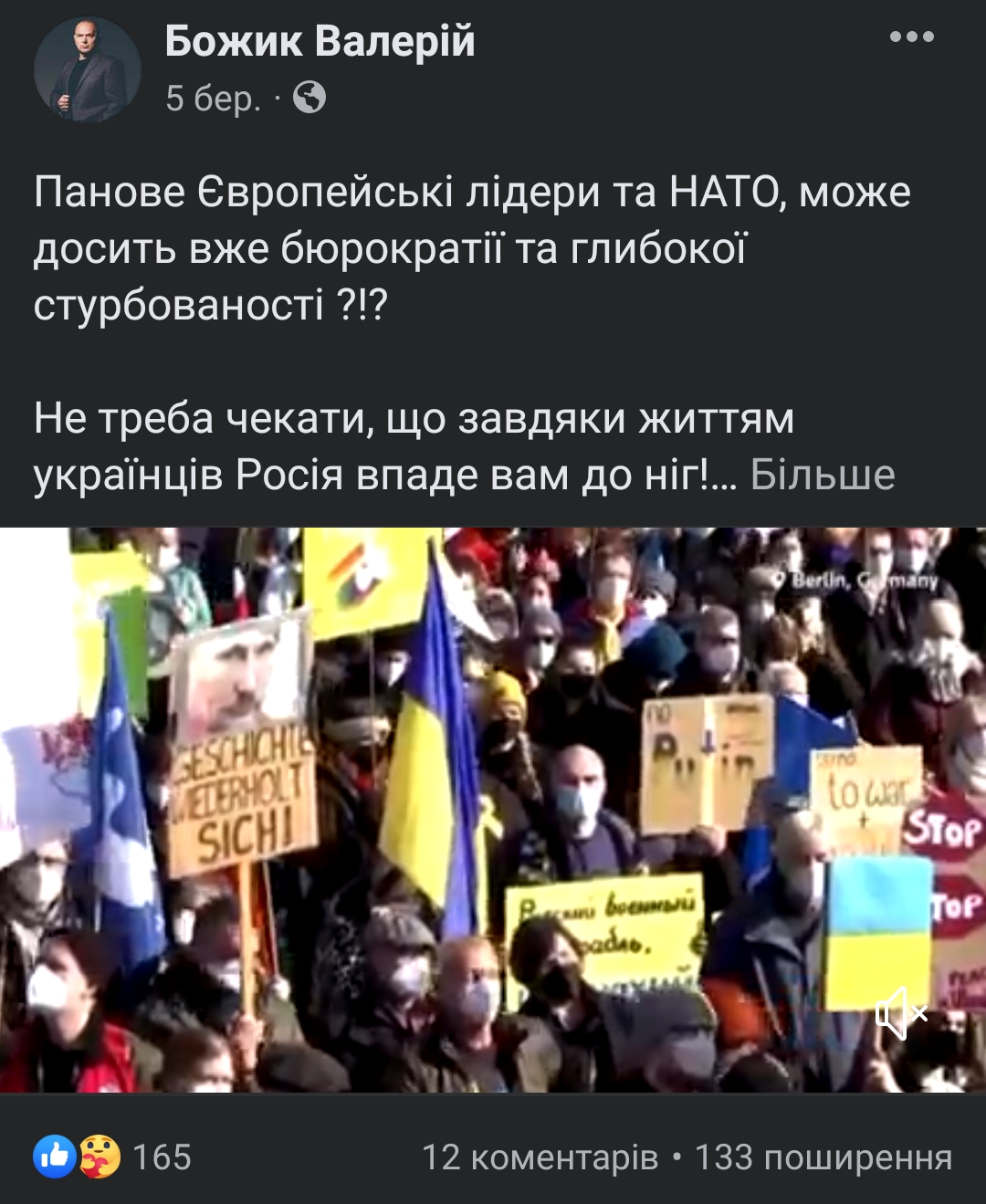 Валерій Божик зробив перший допис про війну 26 лютого, опублікувавши відео з наслідками ракетних ударів по містах України. Наступна публікація на цю тему стосувалась звернення Володимира Зеленського до білорусів 27 лютого. 5 березня народний обранець висловився з питанням до лідерів ЄС та НАТО щодо бюрократичних процедур під час прийняття ними рішень, таким чином критикуючи затримки в наданні допомоги Україні. Ще одне відео без тексту Валерій Божик опублікував 16 березня. Воно показувало міста, що постраждали від російської агресії.
