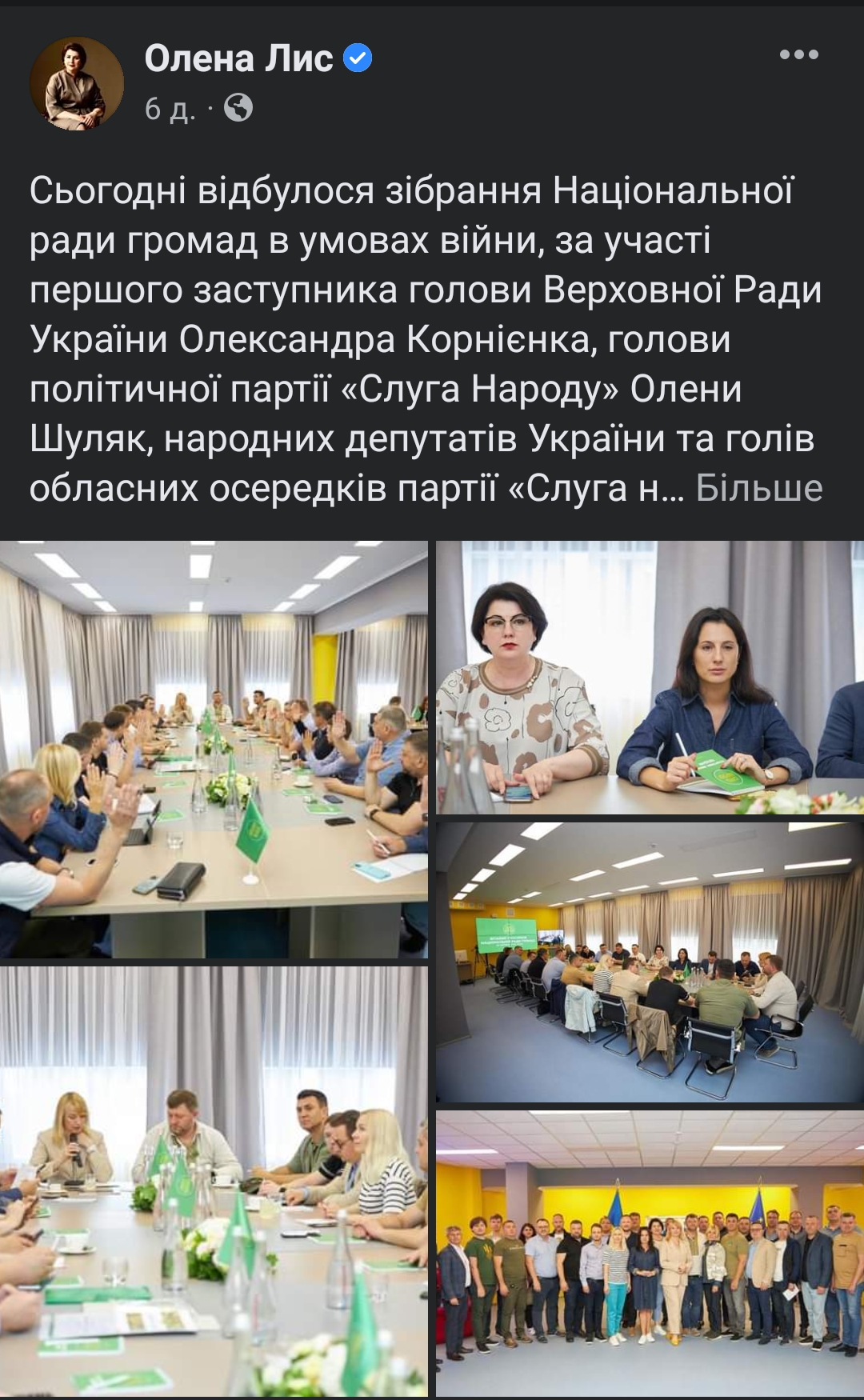 Частина дописів Олени Лис стосувалися роботи Чернівецького обласного офісу партії «Слуга народу» для допомоги вимушеним переселенцям. Також 14 червня депутатка разом з своїми колегами підтримала голову фракції партії «Слуга народу» в Чернігівській обласній раді, якого намагалися переобрати на нелегітимному засіданні. 23 червня Олена Лис взяла участь в зібранні Національної ради громад в умовах війни за участю голови ВРУ та очільника політичної партії «Слуга народу».