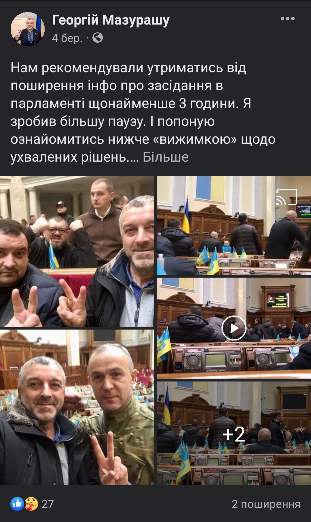 Перший допис про роботу в парламенті Георгій Мазурашу зробив 24 лютого. Згодом він висвітлював свою діяльність у Верховній Раді України досить регулярно. Дописи про це з’являлися 4 березня, 15 березня, 25 березня, 2 квітня, 9 квітня, 15 квітня, 22 квітня, 4 травня, 22 травня, 24 травня та 19 червня.